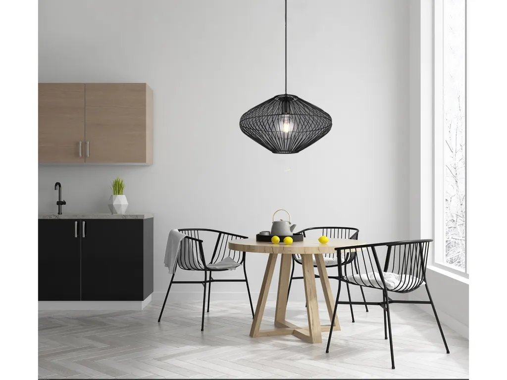 Прикрепленный над журнальным столиком в гостиной или над обеденным столом на кухне, светильник создает великолепные моменты освещения. Вырезы в абажуре создают сказочную игру света и тени, создавая уютную атмосферу. Выполненная в матово-черном цвете, лампа создает отличный контраст в светлых помещениях и создает современную обстановку.