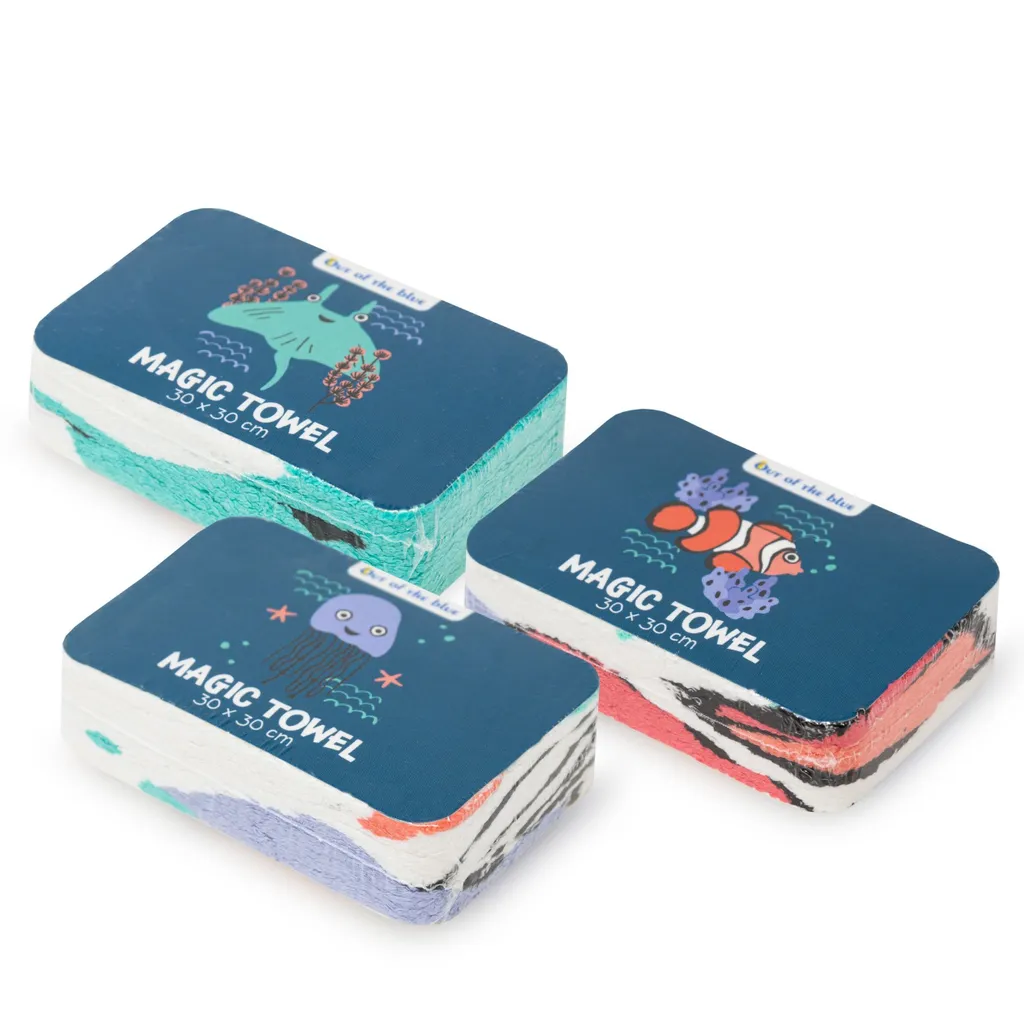 С набором полотенец Ocean Magic ежедневное мытье превращается в увлекательное занятие. Просто поместите их в воду, и полотенца развернутся в полный размер. Идеальный аксессуар для маленьких исследователей — идеально подходит для пасхальных гнезд и адвент-календарей!