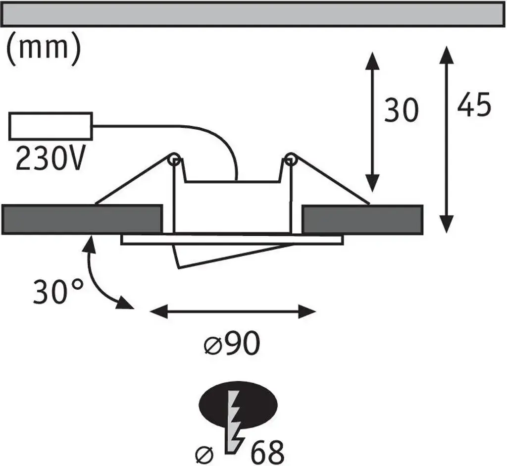 Глубина установки (мм): 45 Глубина полости (мм): 30