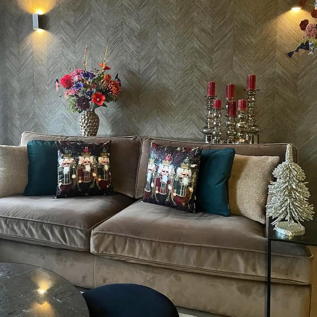 Щелкунчик рассказывает историю девочки и заколдованной куклы Щелкунчика. В сочельник она получает куклу-щелкунчика, и во сне эта кукла оживает и превращается в принца. Эта декоративная подушка станет забавным дополнением к рождественскому сезону!