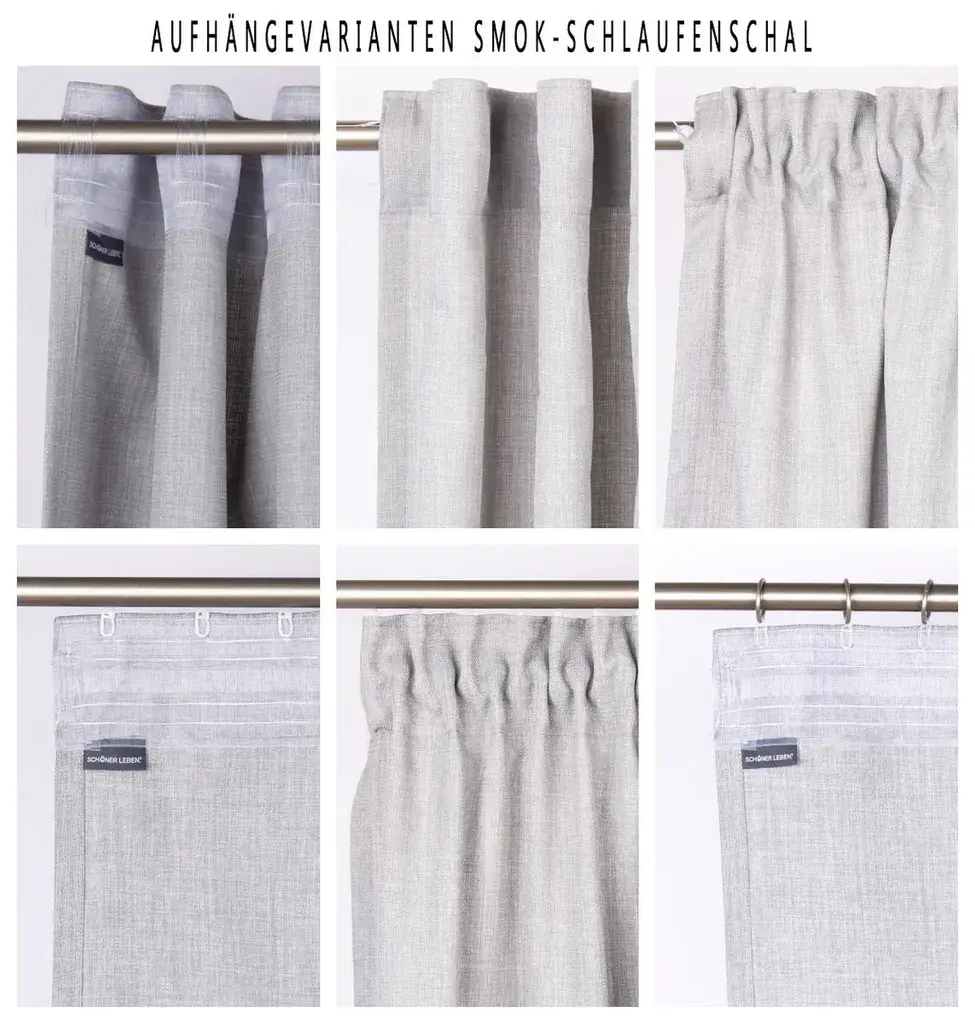 ЛЕНТА SMOK LOOP: занавеска оснащена высококачественной лентой-петлей для гибкого подвешивания и подходит как для карнизов, так и для штор. стержни. Подвешивание с помощью скрытых петель образует красивую волну с выпуклостью только спереди. Вариант дымчатой скамейки позволяет убирать занавеску до фиксированной ширины и подвешивать ее с помощью крючков или планеров.