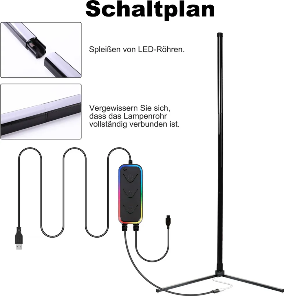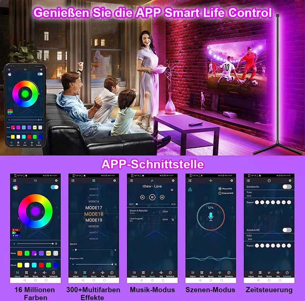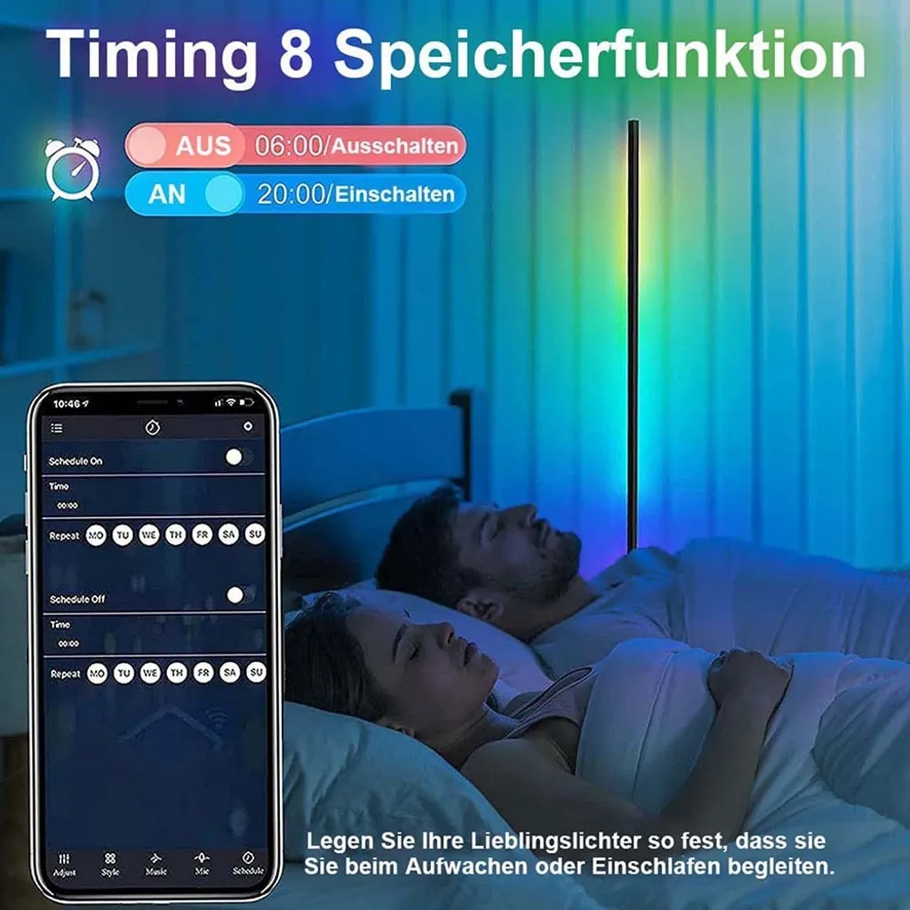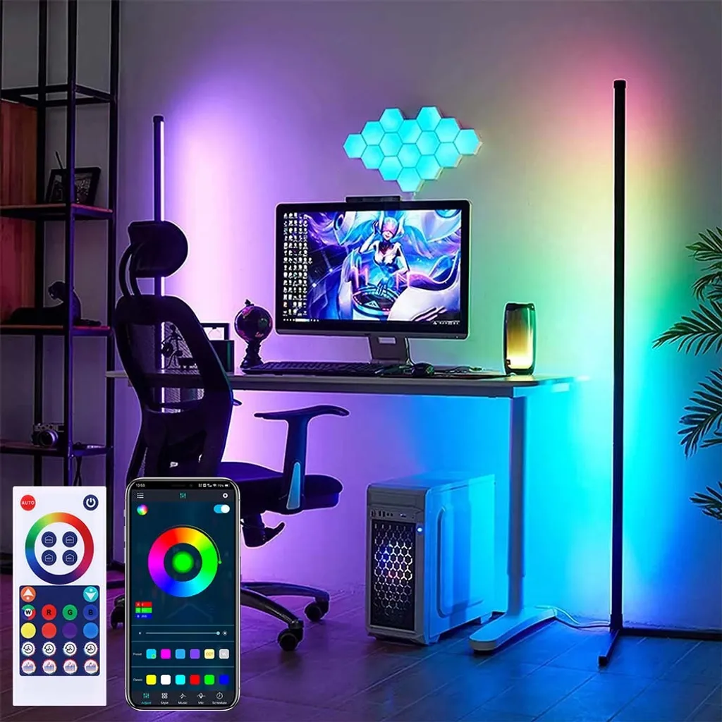 Светодиодный торшер RGB с регулируемой яркостью: акриловый материал, угловой светодиодный торшер, встроенный высококачественный светодиод, с 16 миллионами цветов света и более 300 режимами освещения, включая RGB, цвет радуги и белый дневной свет. Мощность 20 Вт, срок службы 50 000 часов.