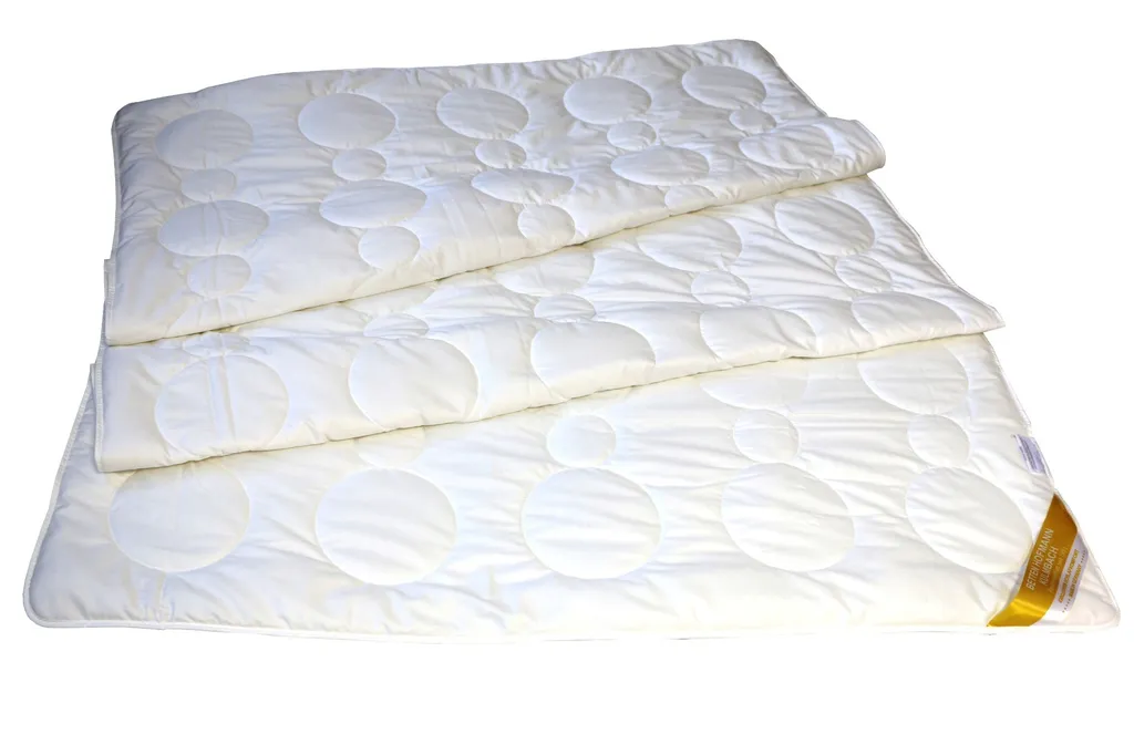 Одеяло из природного сырья. Чехол из приятного для кожи хлопкового сатина с алоэ покрывает вискозный наполнитель, обеспечивающий хорошее впитывание влаги и приятную мягкость. Позволяет спать прохладно и сухо даже в самые жаркие ночи. Круговая стежка прекрасно облегает тело.