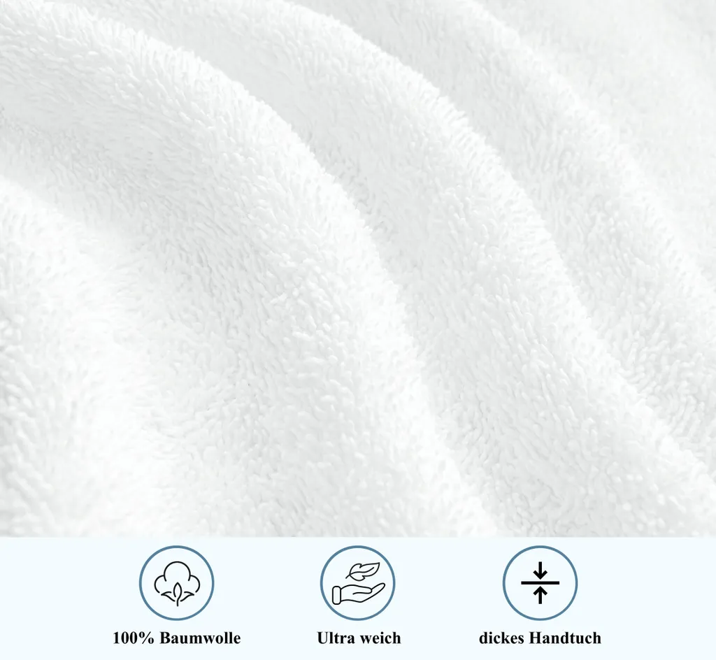 В комплект входит: В комплект входят 4 полотенца для рук размером 100х50 см и 2 полотенца для душа размером 140х70 см