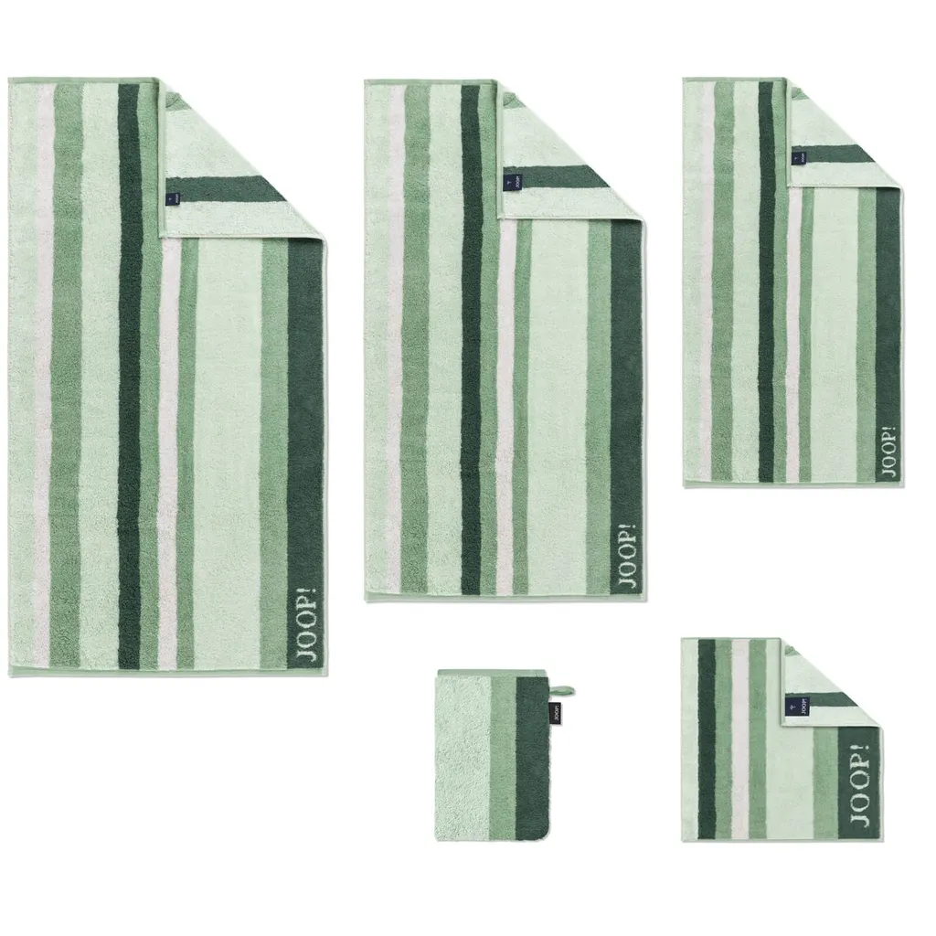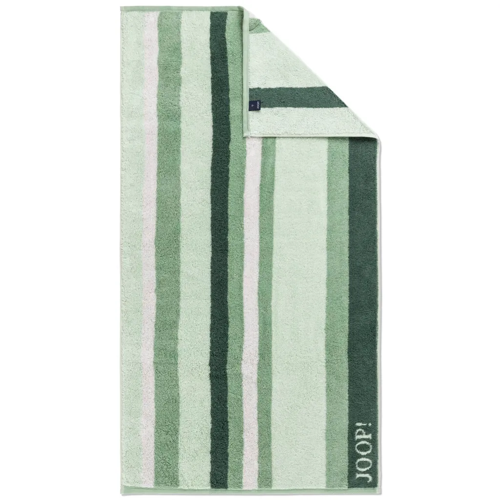 Махровые полотенца из коллекции Vibe от JOOP! Произведите впечатление элегантным полосатым дизайном в модных оттенках серо-зеленого цвета и придайте своей ванной комнате неповторимый вид. Махровые полотенца характеризуются высокой впитываемостью влаги и обеспечивают особенно мягкое и приятное ощущение на коже.