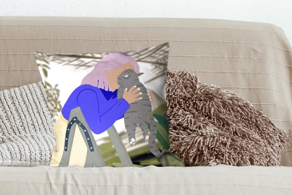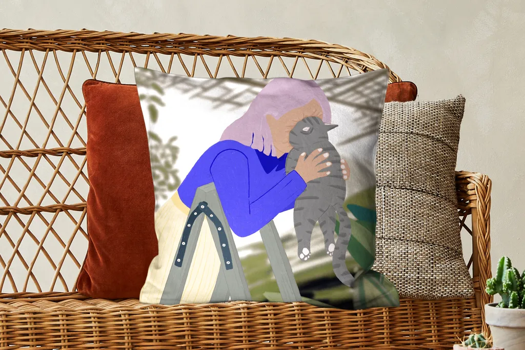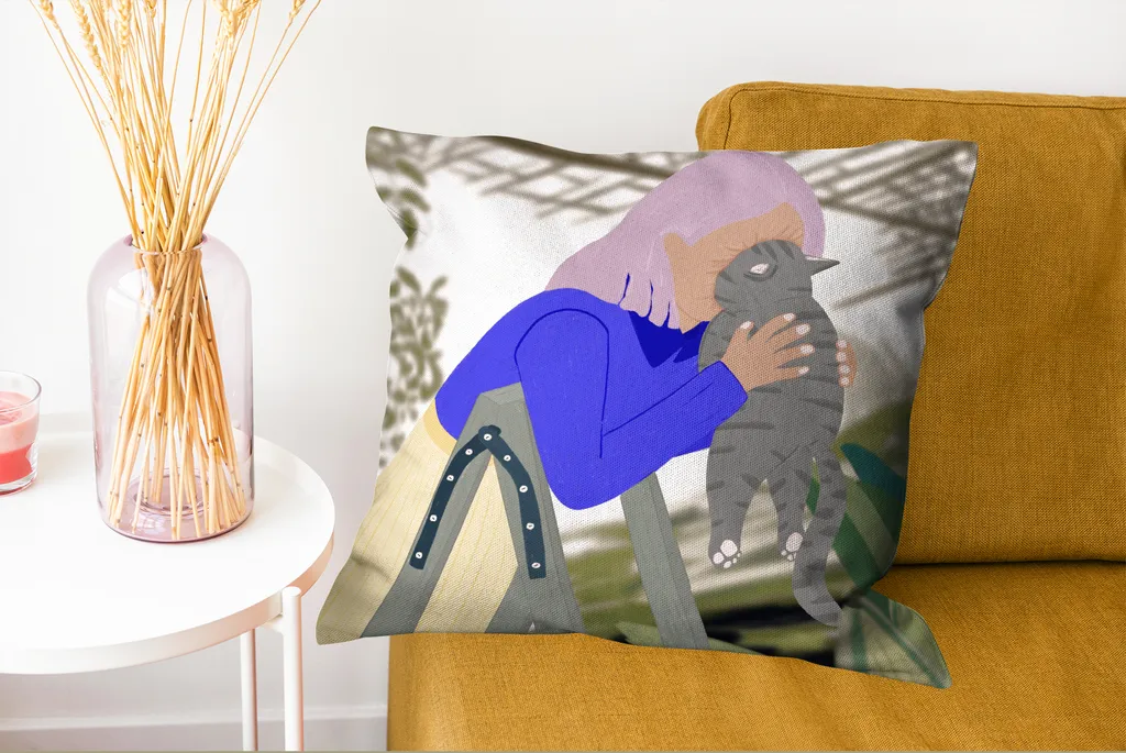 Винтажный дизайн женщины с кошкой.Доставка товаров осуществляется курьером или на пункт выдачи заказов.