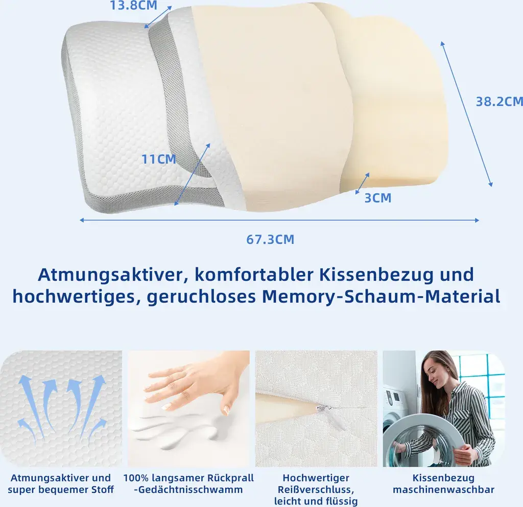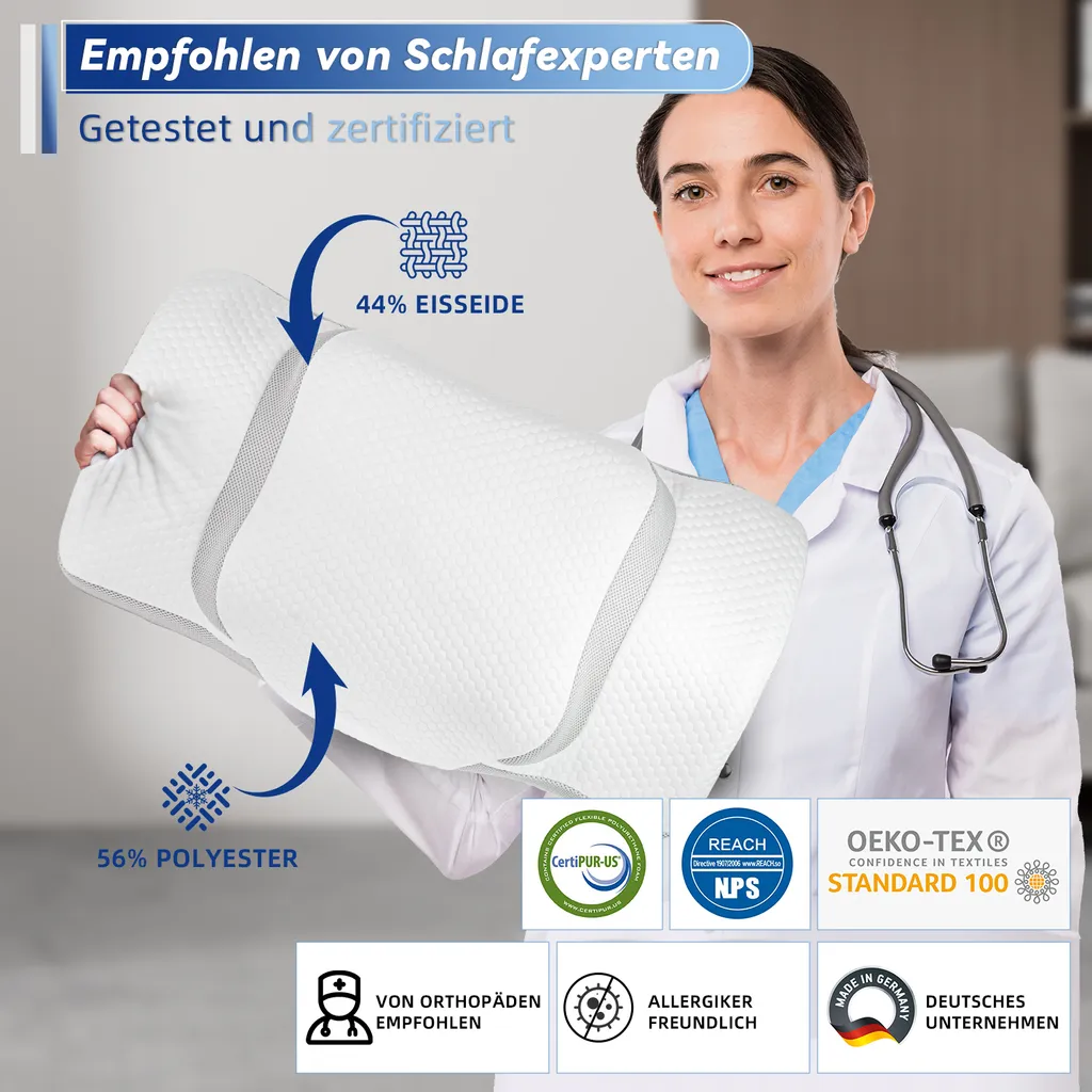 ВЫСОКОКАЧЕСТВЕННАЯ ПРОЧНАЯ ПЕНА С ПАМЯТЬЮ - Наша ортопедическая подушка имеет сертификаты OEKO-TEX в Европейском Союзе, REACH NPS и Certi