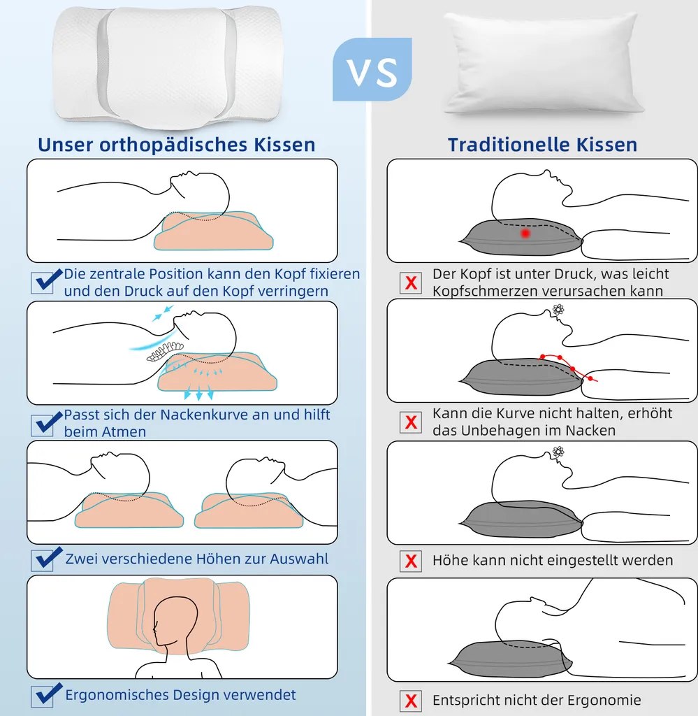 2 ВЫСОТЫ ОРТОПЕДИЧЕСКОЙ ПОДУШКИНе можете найти подушку нужной высоты? Наши подушки для поддержки шеи предлагают на выбор две разные высоты, чтобы вы могли найти ту высоту, которая соответствует вашему положению во время сна. С этой эргономичной подушкой вы сможете быстрее заснуть, улучшить свой сон, облегчить боль и дискомфорт в шее и плечах, уменьшить давление на шейный отдел позвоночника и позвоночник и помочь организму восстановить жизненные силы.