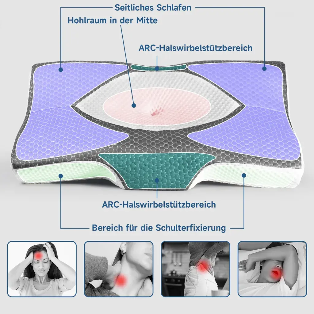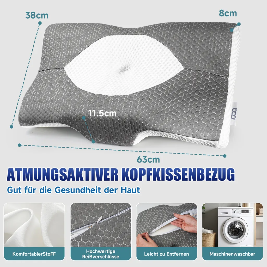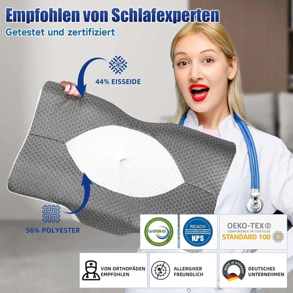 ЭРГОНОМИЧНАЯ ПОДУШКА - Эта ортопедическая подушка, разработанная в сотрудничестве с хирургами-ортопедами, идеально подходит для облегчения болей в шее и спине во время сна, а также для облегчения храпа и проблем с дыханием
