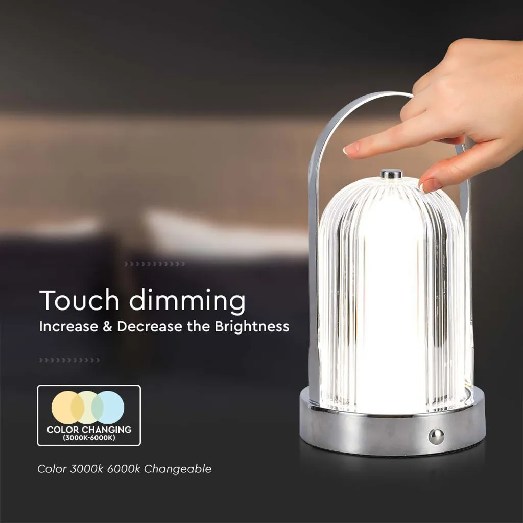 Ач для длительного использования без постоянной подзарядки. Благодаря сенсорному затемнению и уютному 3В1: теплому/дневному/белому свечению при температуре 3000–6000 К эта лампа создает теплую атмосферу в любой комнате. Изготовленная из прозрачного пластика и металла, эта лампа долговечна. Цвет хром придаст элегантности любому интерьеру. Имея размеры всего 120 x 190 мм, он идеально помещается на любом столе или поверхности. Благодаря времени зарядки всего 2–3 часов и времени освещения до 6–8 часов вы всегда будете в курсе событий. Выберите светодиодную настольную лампу со степенью защиты IP20 для использования в помещении.