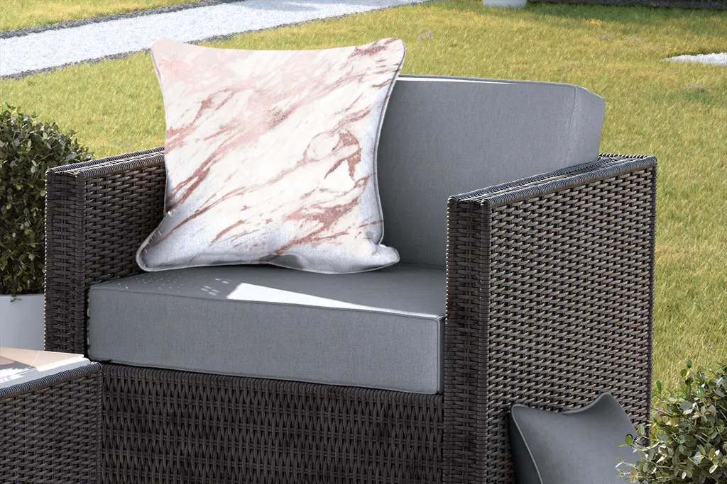 Подушка изготовлена из полиэстера, что делает подушку устойчивой к атмосферным воздействиям. и водонепроницаемый. Даже в сильный ливень материал не впитывает дождь, а просто скатывается! Это делает подушки идеальными для садового набора.
