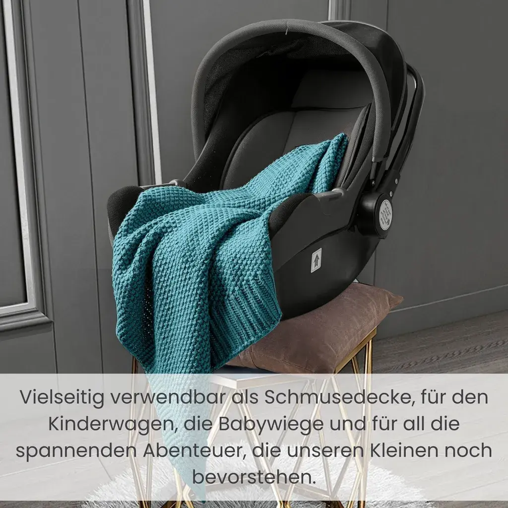 Замечательное и абсолютно современное вязаное одеяло для детей и младенцев, с вязаным жемчужным узором. размером примерно 70x100 см. Идеальное одеяло для вашей коляски, детской люльки или детской переноски. Одеяло прекрасно сохраняет тепло, будь то в детской кроватке, переноске или в колыбели, где можно обниматься.