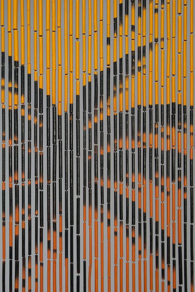 Бамбуковые пряди повесьте рядом друг с другом на деревянной полоске, чтобы ширину полосы можно было легко укоротить с помощью пилы. При некоторой сноровке отдельные бамбуковые палочки можно вынимать вдоль, так как пряди соединяются проволочными петельками.