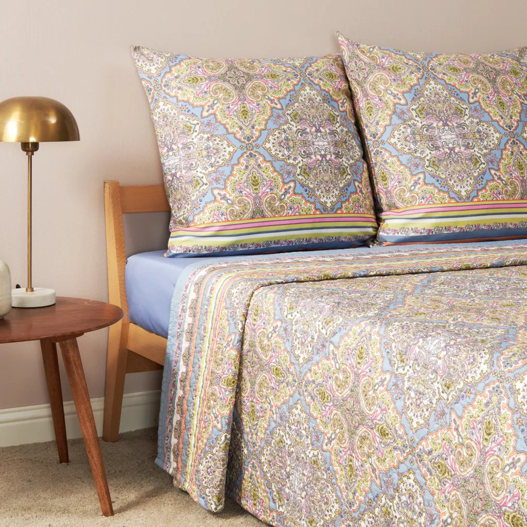 Стеганое покрывало из 100% хлопка доступно в четырех размерах. Покрывало Bassetti с ромбовидной стежкой окрашено в пряжу индантреновыми красками (моющиеся и светостойкие красители), поэтому оно не теряет своей яркости даже при машинной стирке. Его также можно идеально использовать в качестве пледа или в саду как одеяло для пикника. Ткань и легкий мягкий наполнитель изготовлены из 100% чистого хлопка. Покрывало произведено в Италии, его можно стирать в машине при температуре до 40°C.
