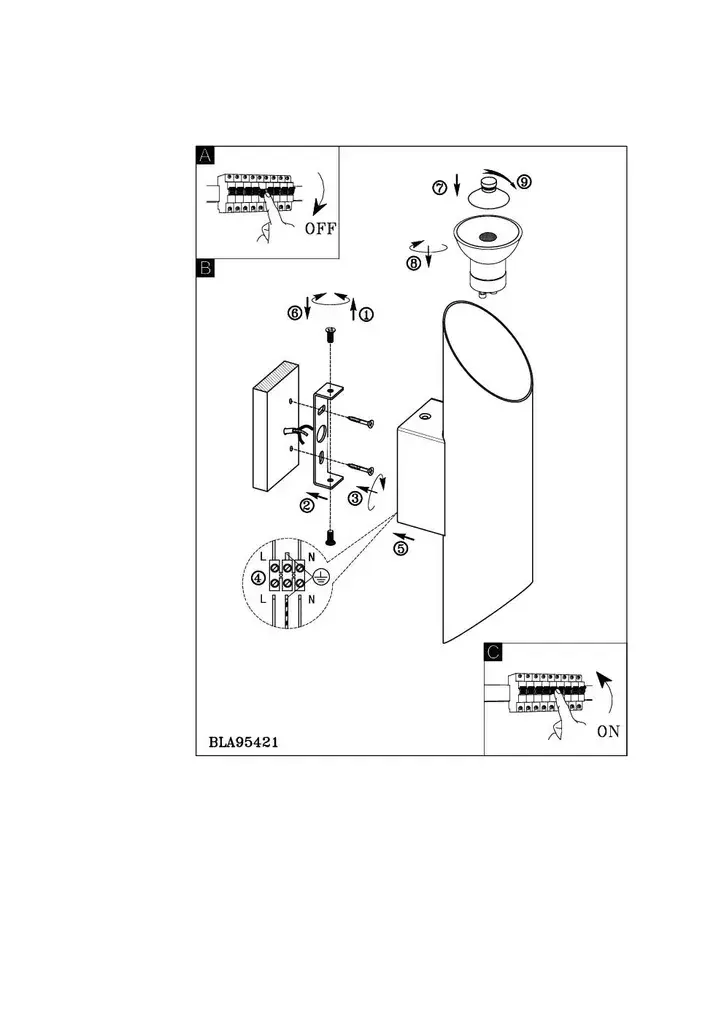 Объём поставки: 1 светодиодный настенный светильник с 2 сменными лампочками GU10 без кабеля питания и вилки. Для подключения настенного светильника требуется кабель скрытого монтажа в стене.