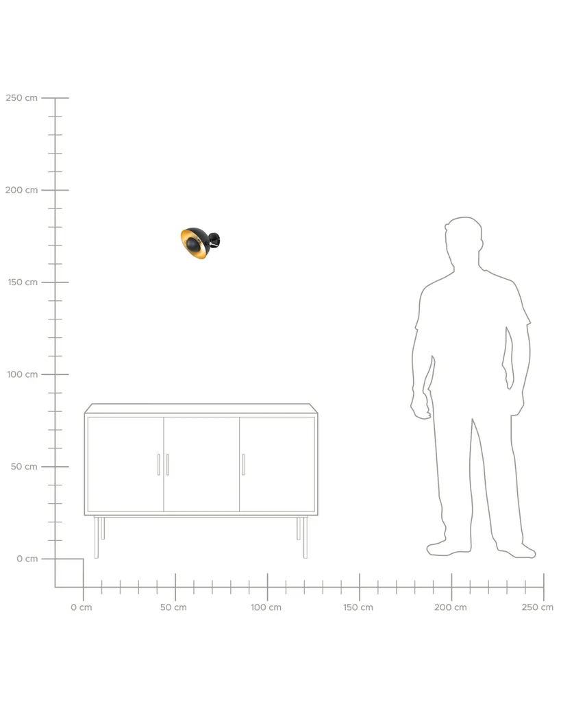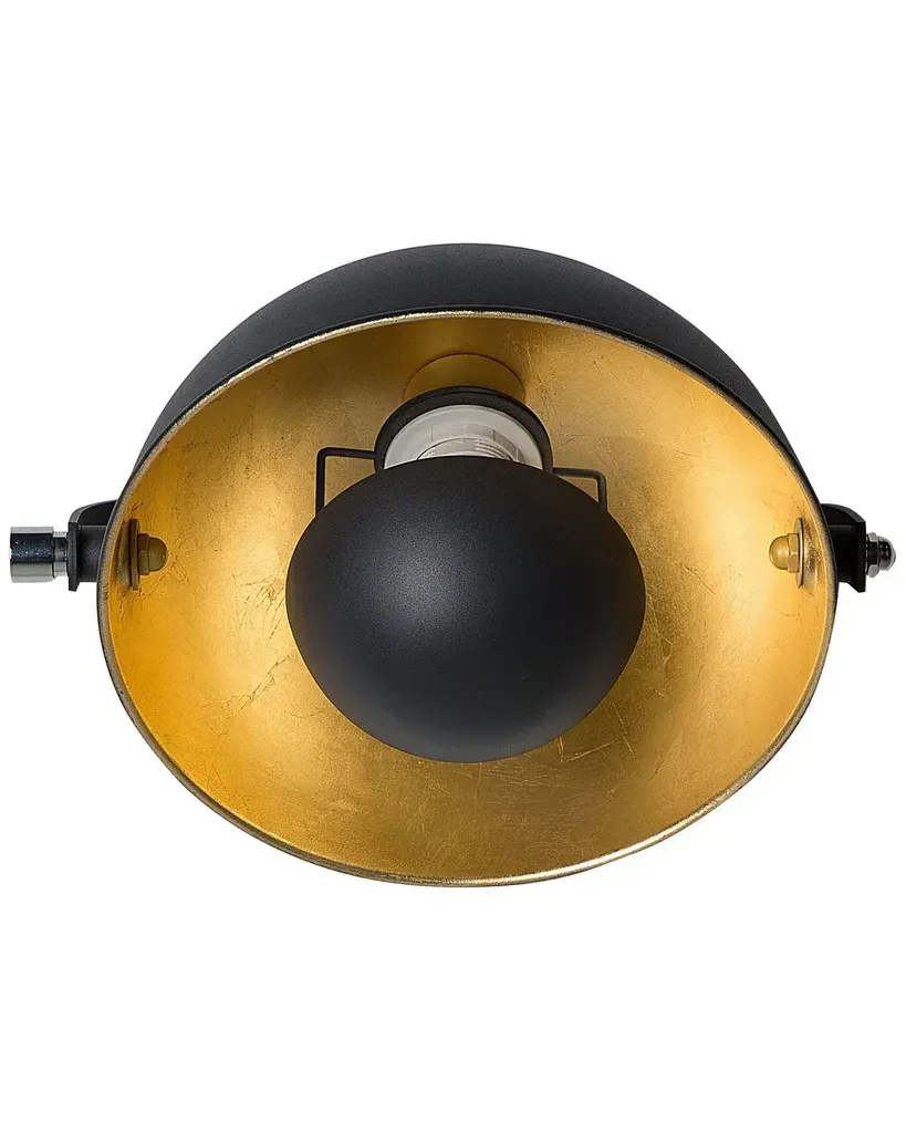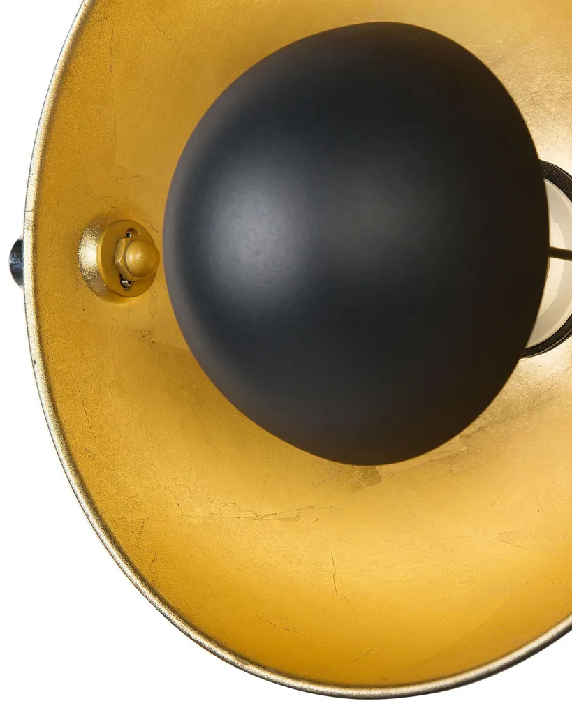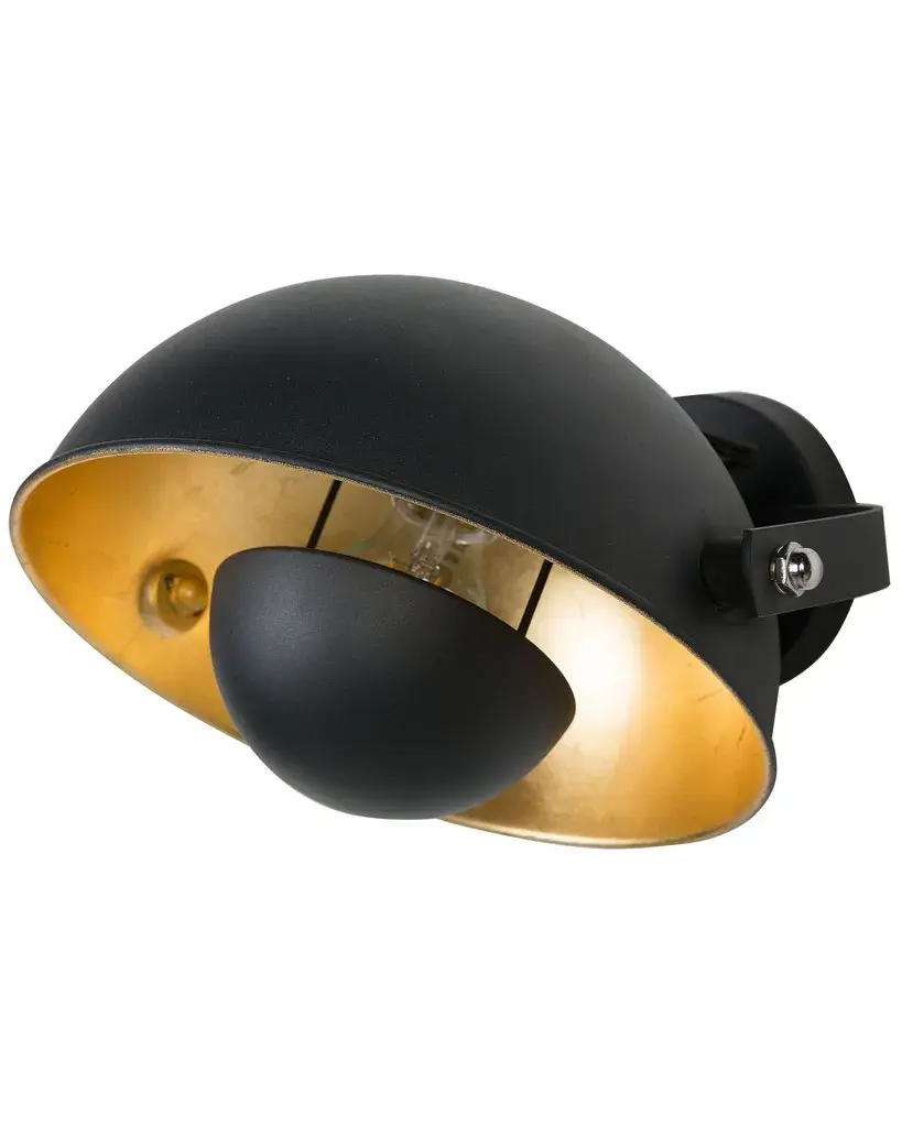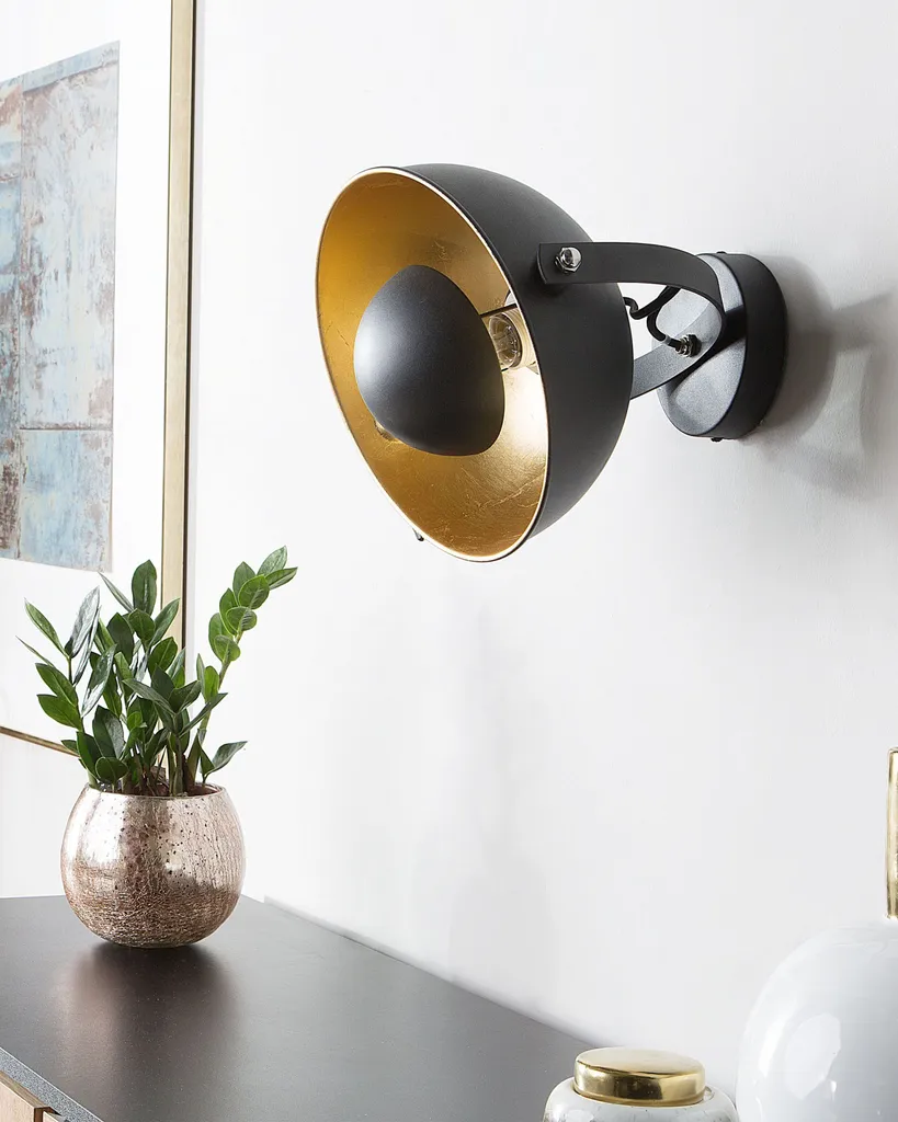 Современный дизайнерский настенный светильник черного цвета. Настенный светильник привлекает внимание благодаря своему современному дизайну. Круглый изогнутый абажур из прочного металла имеет матово-черную внешнюю поверхность, которая прекрасно контрастирует с блестящей золотой внутренней частью. Лампа дает непрямой, отражающий свет благодаря матовой черной изогнутой крышке внутри, за которой расположена лампочка. Необычный светильник подойдет всем, кто хочет расставить экстравагантный акцент в своем доме.