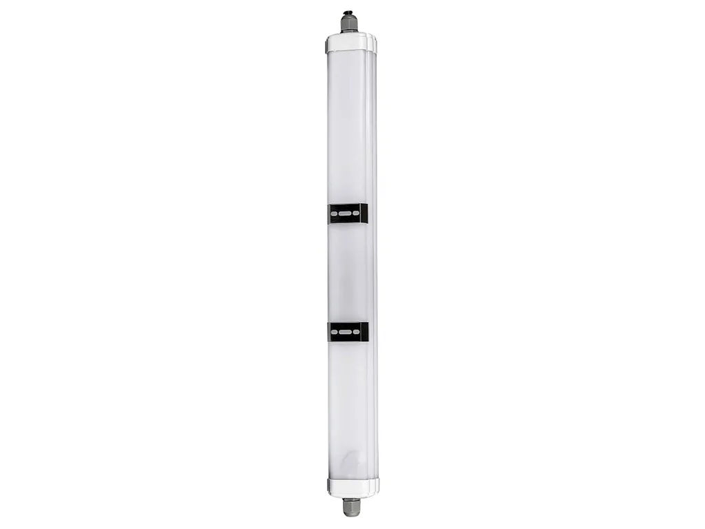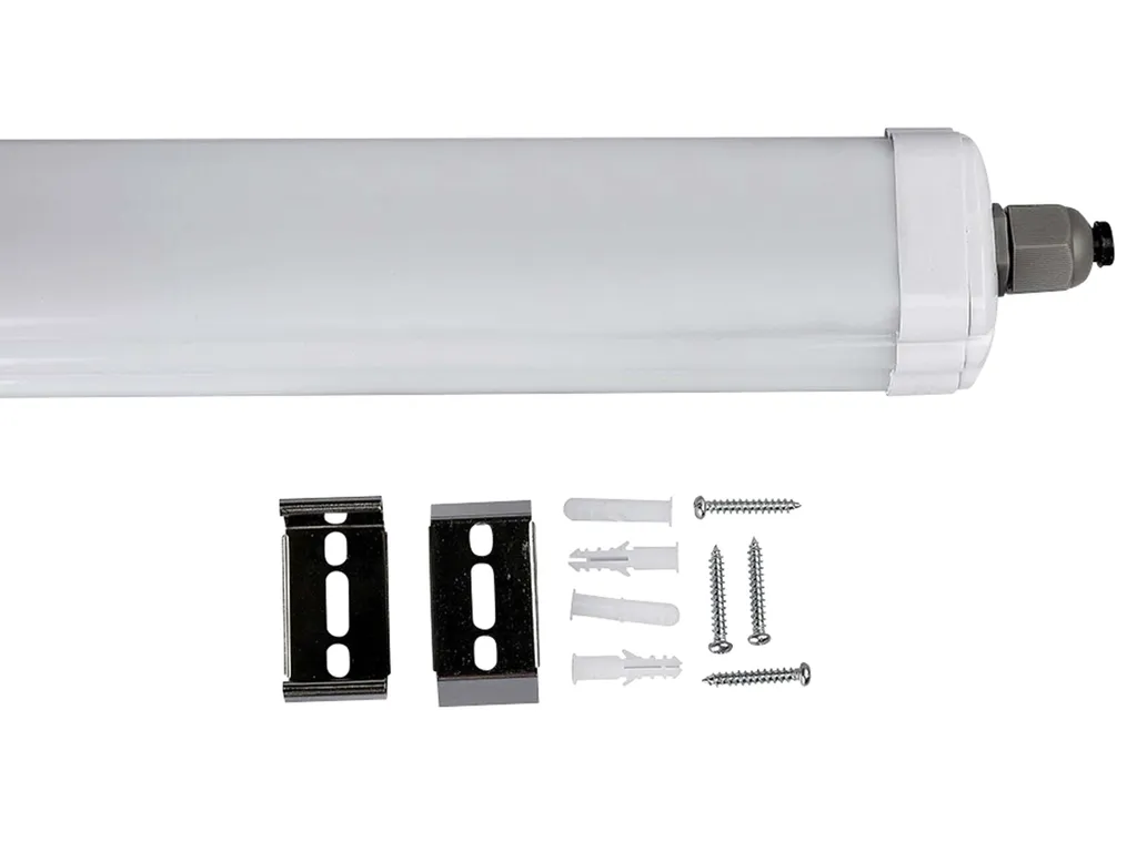 Этот чрезвычайно прочный влагозащищенный светильник отличается, среди прочего, энергосберегающими и долговечными светодиодами SMD высокой мощности, простотой установки и классификацией IP65. Это означает, что светильник также можно использовать на открытых площадках и во влажных помещениях. Подходит для складов, гаражей, навесов, подвалов, мастерских и т. д. Особенности: - Прочный корпус - Простота установки - Долговечные светодиоды SMD высокой мощности - Классификация IP65 Технические данные: - Класс энергоэффективности: E - Спектр EEK: A - G - Взвешенное энергопотребление: 36 кВтч/1000 ч - Рабочее напряжение: 220…240 В, 50/60 Гц - Мощность: 36 Вт - Цветовая температура: 4500 К - Цвет света: нейтральный белый - Световой поток: 4320 лм - Световая отдача: 120 лм/Вт - Индекс цветопередачи (CRI):>80 Ra - Угол луча: 120° - Класс защиты: IP65 - Регулировка яркости: нет - Средний срок службы: 25 000 часов - Циклы переключения:> 15 000 - Запуск время до 100%: 0,001 с - Коэффициент сдвига: 0,9 - Рабочая температура: -20°C...+40°C - Цвет корпуса: белый - Размеры (Дx