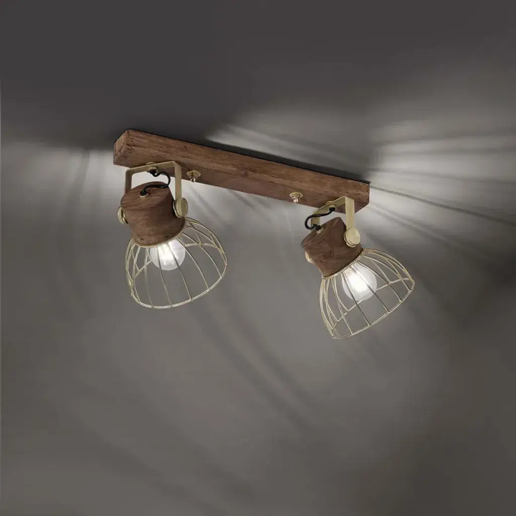Двупламенный настенно-потолочный светильник ALAMI представляет собой красивое сочетание дерева манго с металлическими элементами из матовой латуни. Вы можете оснастить лампу двумя лампочками E27 максимальной мощностью 25 Вт. Комбинируйте настенный светильник с источником света, который соответствует вашему вкусу. Используя лампу накаливания, вы можете умело дополнить внешний вид лампы. Головки потолочного светильника можно поворачивать и поворачивать, поэтому их можно регулировать и выравнивать по желанию. ALAMI в модном индустриальном стиле находит свое место, в частности, в гостиных и спальнях, но также может использоваться и во многих других помещениях. Благодаря решетке в металлическом абажуре бра и потолочный светильник создают великолепную игру света. Светильник имеет длину 64 см, ширину 29 см и подвес 21-29 см.