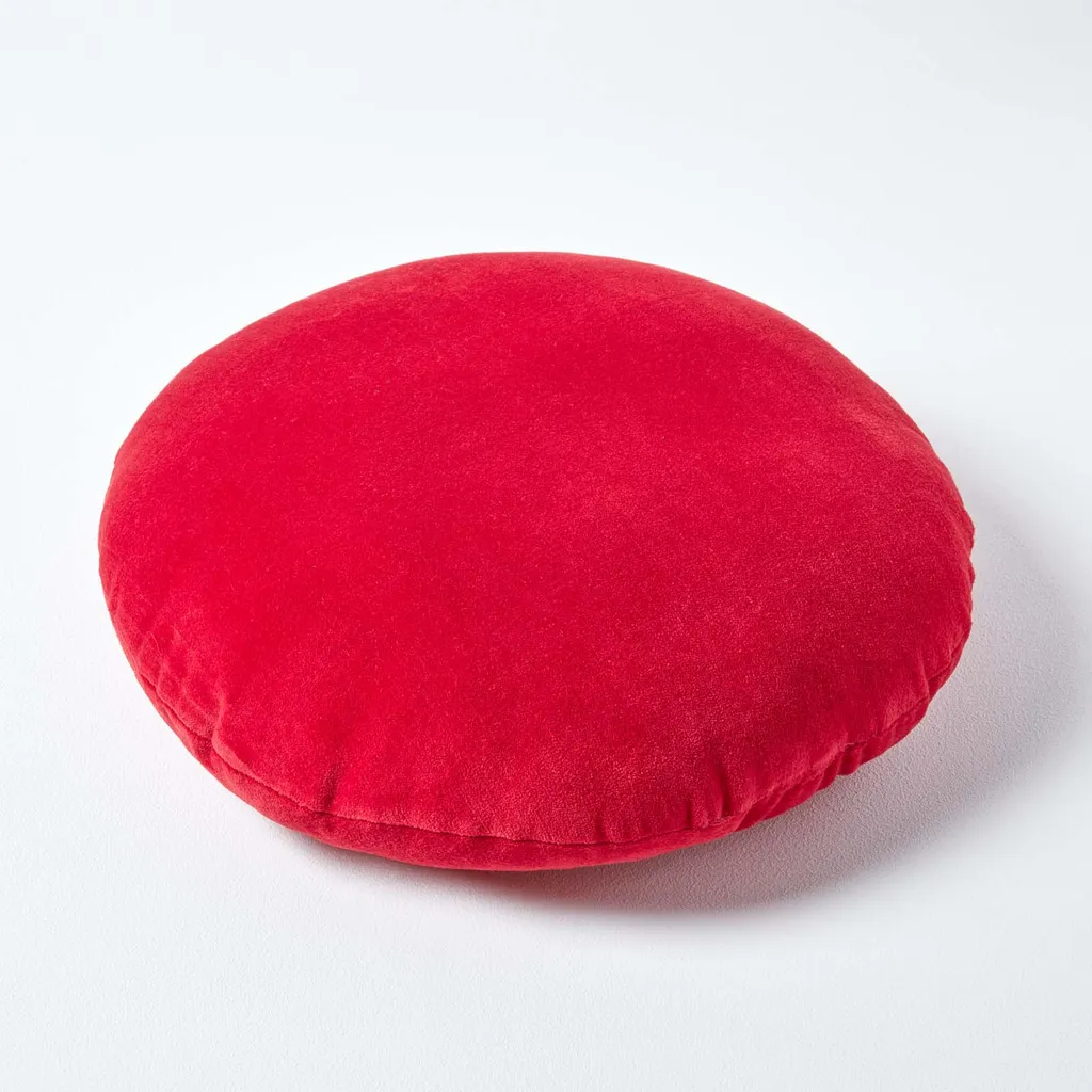 Роскошная красная бархатная подушка от Homescapes. Эта круглая подушка для сиденья размером 40 см наполнена мягким полиэстером, обеспечивающим идеальный комфорт для сидения.