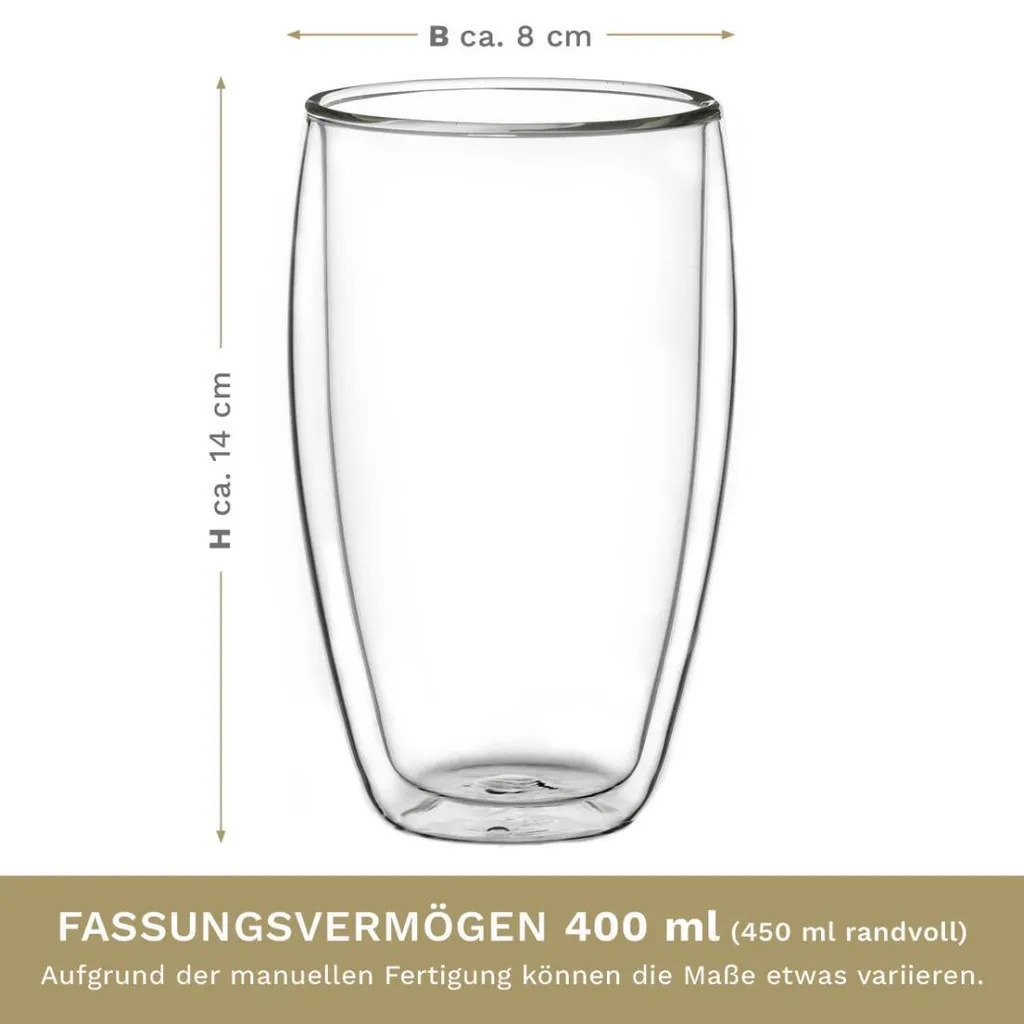 Кроме того, стакан с двойными стенками гарантирует, что внешнее стекло всегда равномерно закалено, что также предотвращает ожоги пальцев, осталось в прошлом. Также отличный эффект: нет раздражающего конденсата, поэтому нет раздражающих краев на столе при наслаждении холодными напитками.