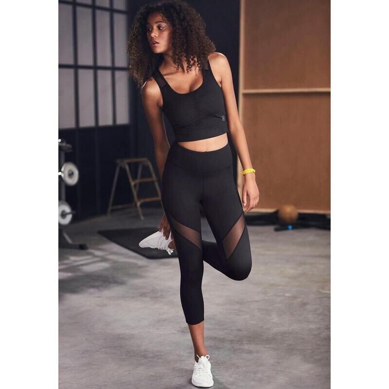 Леггинсы Lascana Active Capri. Сетчатые вставки на ножках. Небольшая сборка в задней части днища. Изготовлен из 75% полиэстера, 25% эластана. Сетка: 90% полиэстер, 10% эластан.