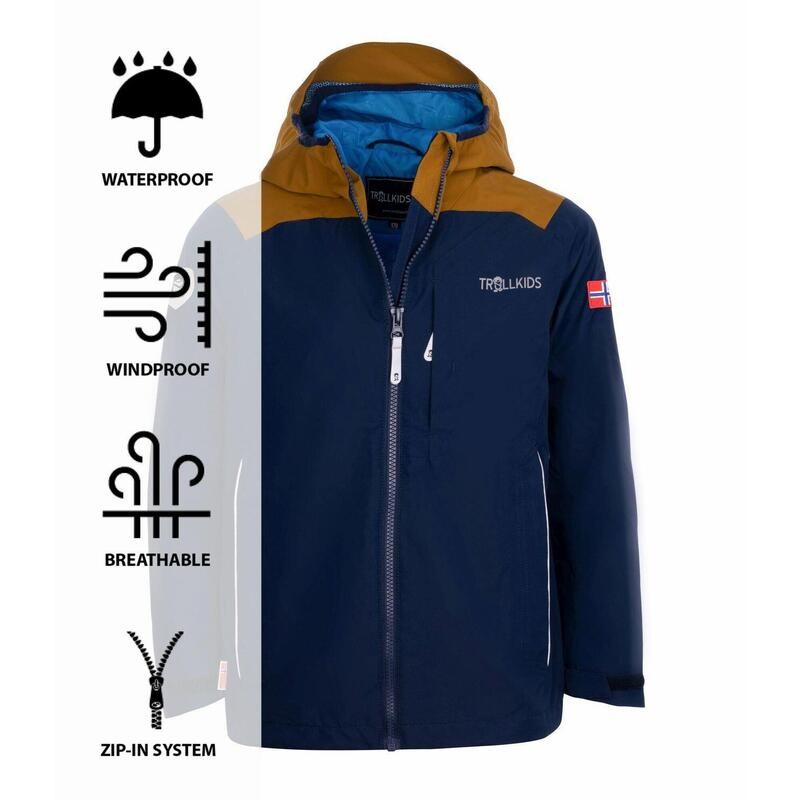 КУРТКА KIDS BERGEN JACKET – это почти классика TROLLKIDS. Популярная дождевик теперь доступна в новой версии, изготовленной из 100% переработанного полиэстера. Материал изготовлен из ПЭТ-бутылок.
