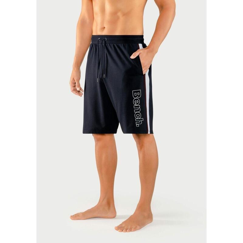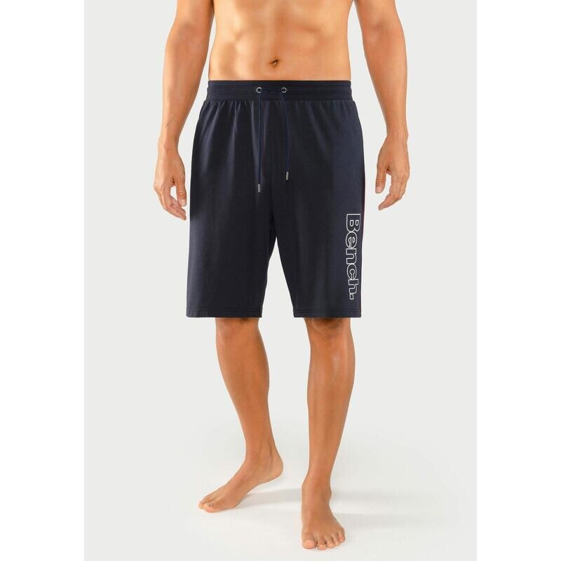 Широкие и удобные шорты для отдыха от Bench. Вставка с боковыми полосками и принт с логотипом на левой штанине. Эластичный пояс со встроенным шнурком для оптимальной посадки.
