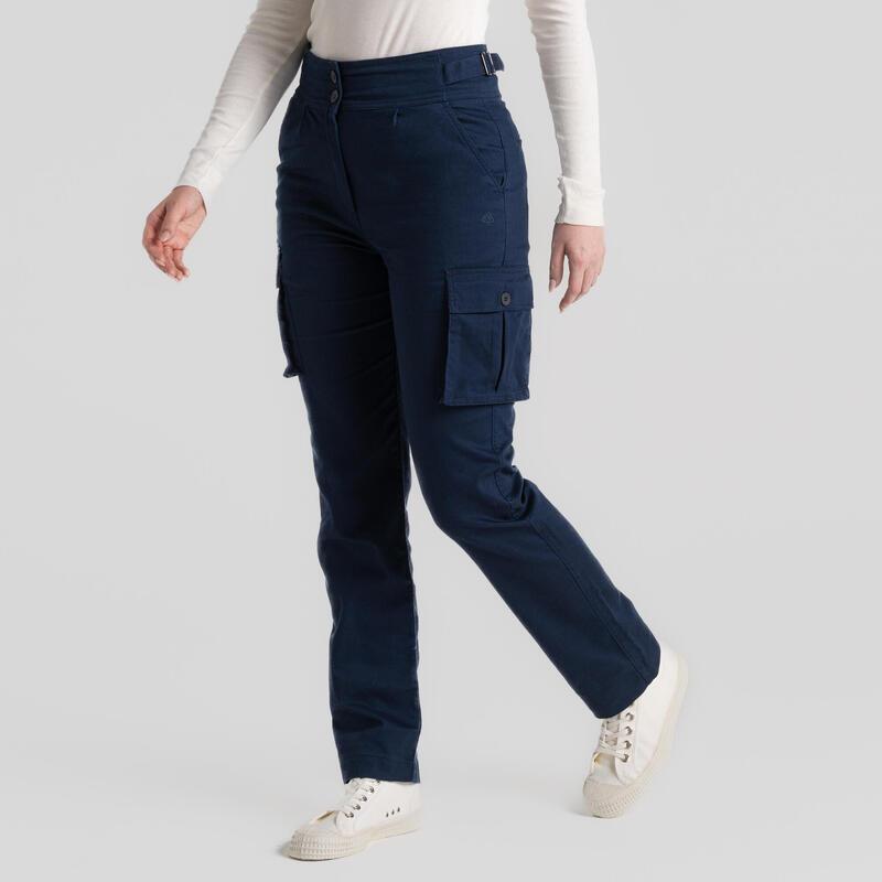 Пара водоотталкивающих брюк, частично изготовленных из переработанных материалов. Модель для женщин, подходящая для походов и прогулок.