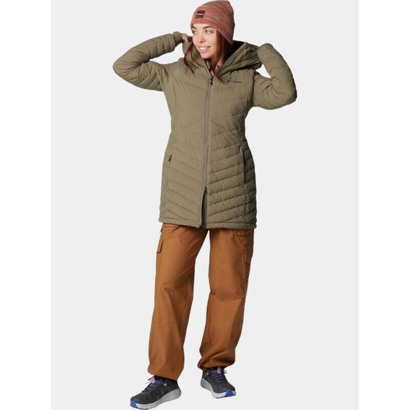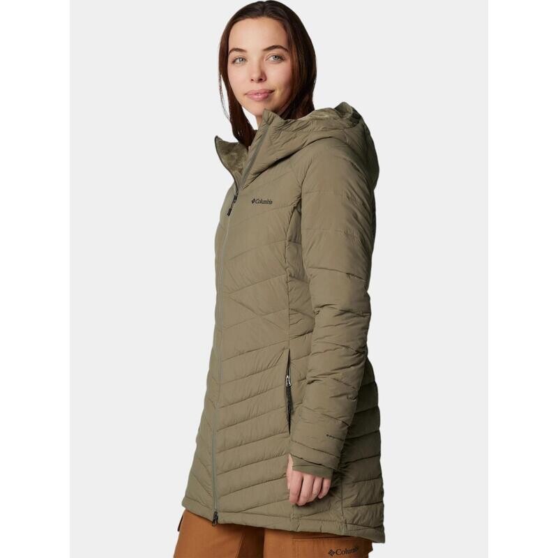 Женская зимняя куртка Columbia Joy Peak имеет слегка приталенный крой и превосходно удерживает тепло, что делает ее хорошим выбором для суровых зимних дней.