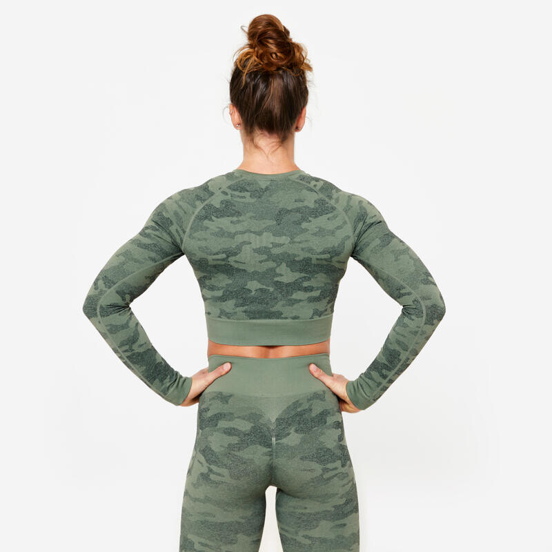 Эта влагоотводящая рубашка с длинными рукавами украшена камуфляжным мотивом, который полностью подчеркнет ваш стиль во время силовых тренировок. Этот бесшовный укороченный топ гарантирует плотное прилегание одежды без каких-либо ограничений и адаптируется к каждому вашему движению.