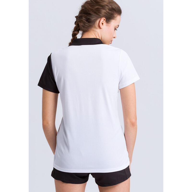 Шикарная и спортивная женская рубашка-поло 5-C. Во время тренировок полиэфирный материал переносит влагу изнутри наружу. Внутри воздушная сетка обеспечивает приятный микроклимат тела.