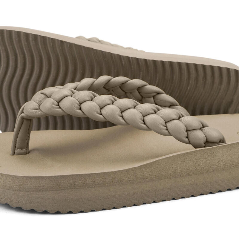 Wedgyweave впечатляет своей простой красотой, выполненной из плетеных ремней (веганская кожа) и модной подошвой на платформе из этиленвинилацетата с удобной стелькой.