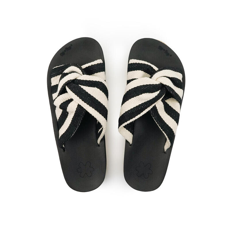 Сандалии на платформе wedgytwist оснащены широким декоративным ремешком из хлопка и подошвой со стелькой и волнистым профилем.