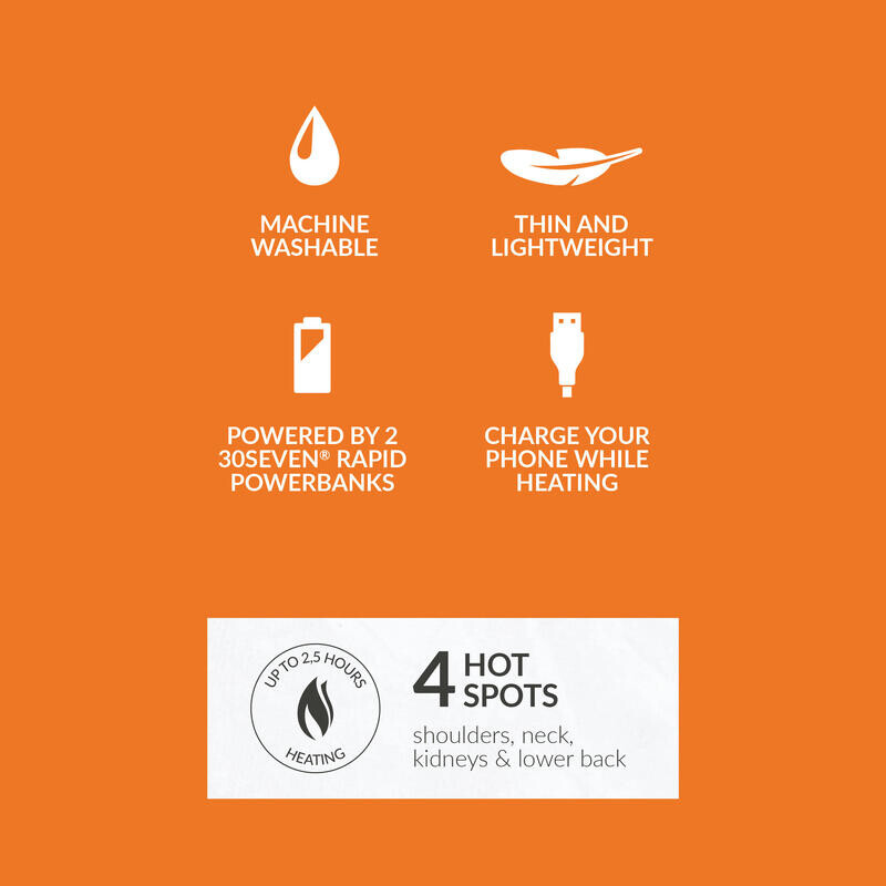 Эта удобная водоотталкивающая куртка согреет вашу спину. Со съемным капюшоном и эластичными манжетами. Работает от 2 перезаряжаемых батарей и сохраняет тепло в течение 2,5 часов.