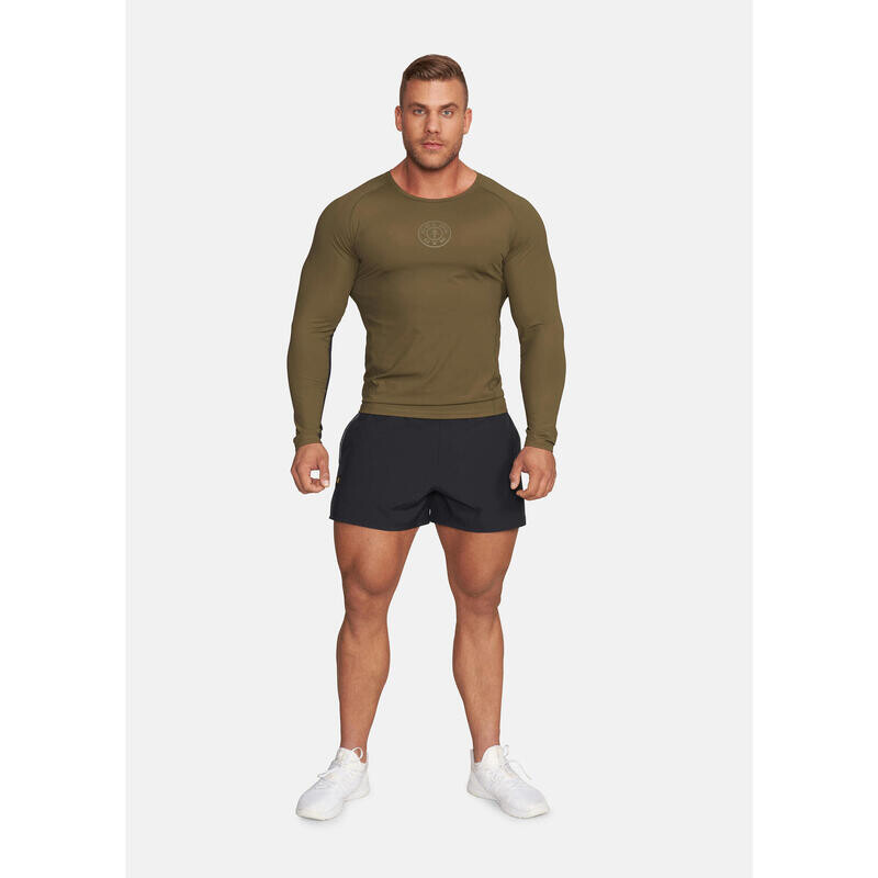 Спортивные шорты на эластичном поясе из легкого, воздушного материала. С внутренним шнурком для индивидуальной регулировки посадки.