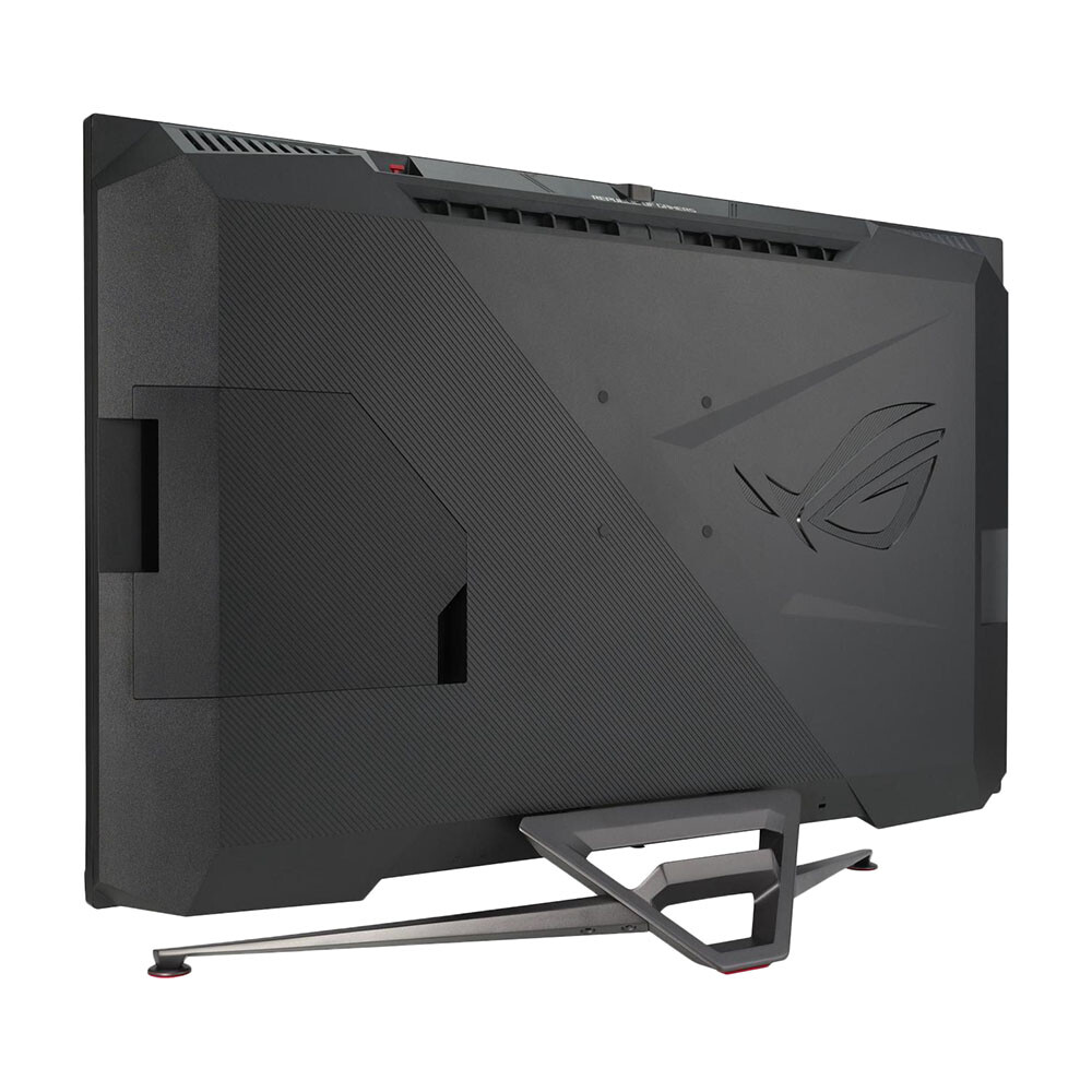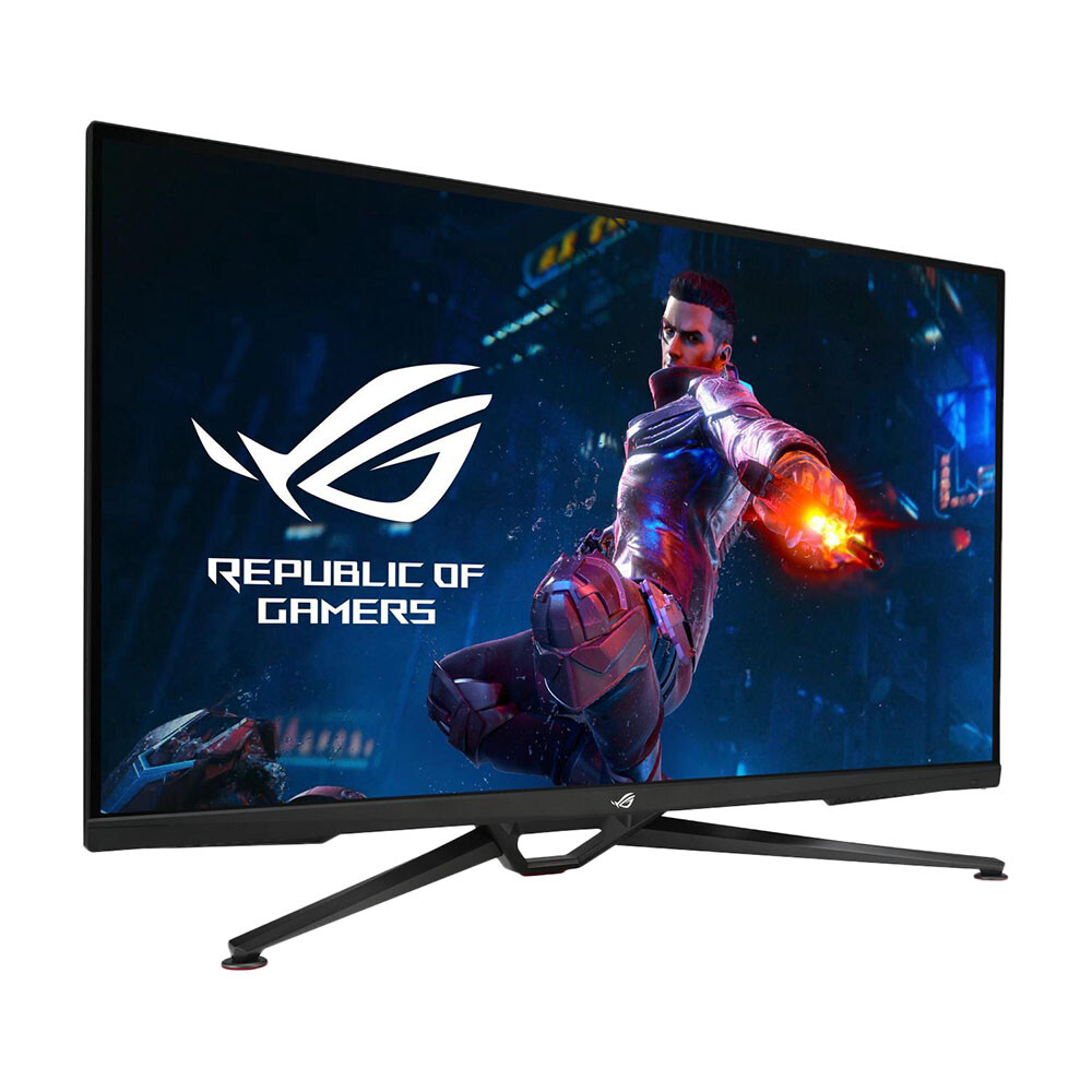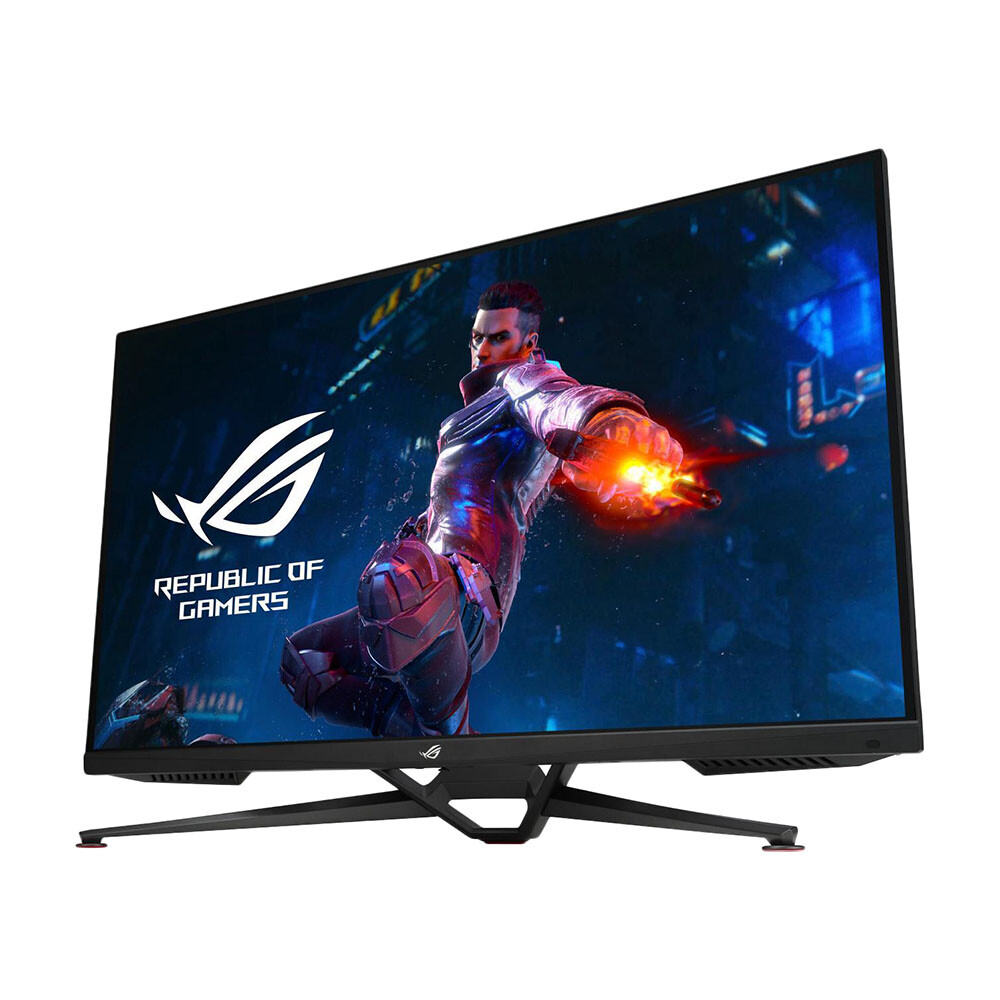 Игровой монитор Asus ROG Swift PG38UQ представлен в черном матовом корпусе с наклонной подставкой. 38-дюймовый экран с разрешением 3840x2160 dpi показывает четкую и реалистичную картинку с точной передачей цвета и мелких деталей. Частота обновления 144 Гц и отклик пикселя за 1 мс снижают задержки видео и игровой графики.