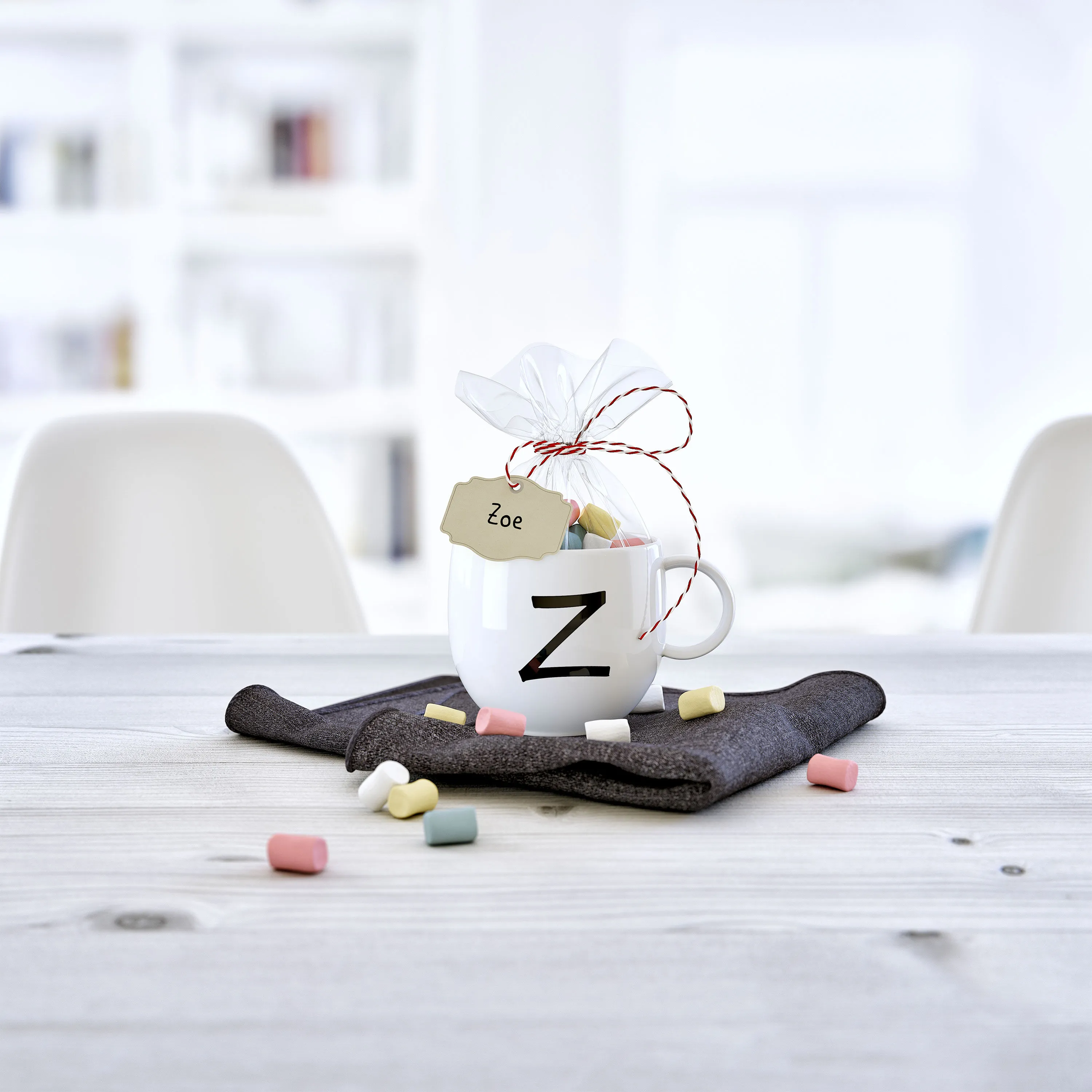 Кружка с буквами и ручкой