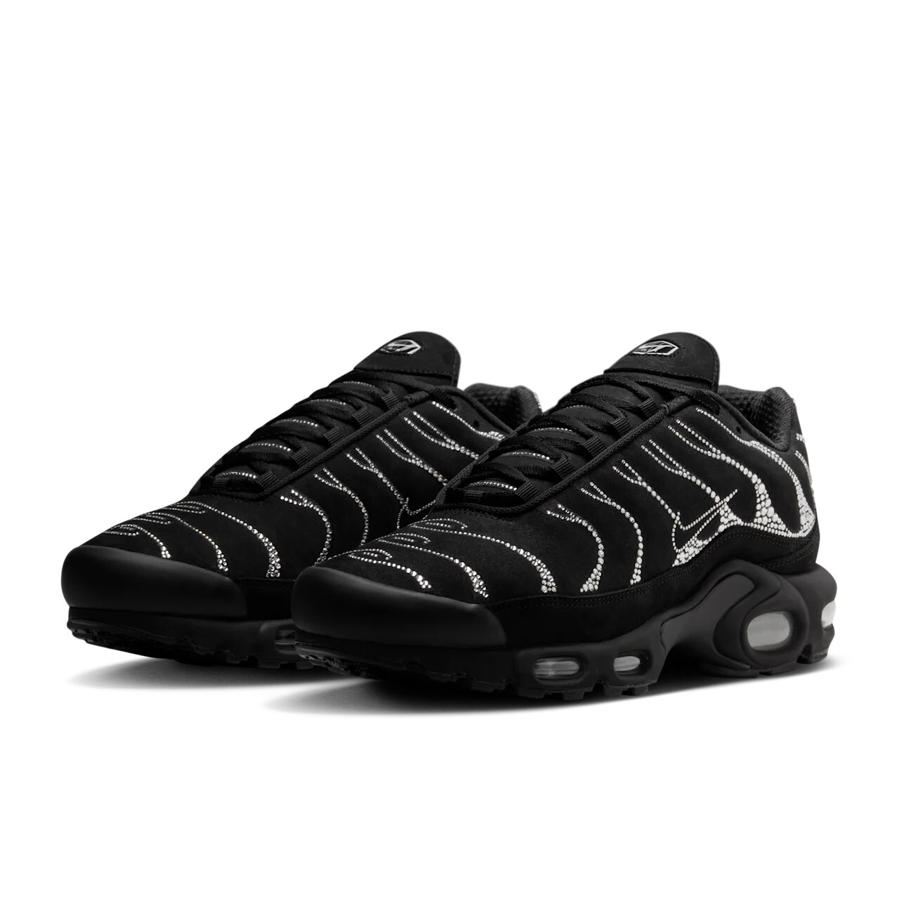 Swarovski создает завораживающие дизайны уже почти 130 лет. На этот раз Nike и Swarovski переосмыслили модель Air Max Plus, по-новому взглянув на ее классические компоненты. Градиентный дизайн выполнен из кристаллов Swarovski в мозаике, вдохновленной лунным светом, на фоне гладкой черной кожи. В сочетании с такими фирменными деталями, как арка межподошвы, знаковая волнообразная линия и амортизация Nike Air, эта кристаллизованная версия добавляет сверкающий оттенок роскоши в любой образ.