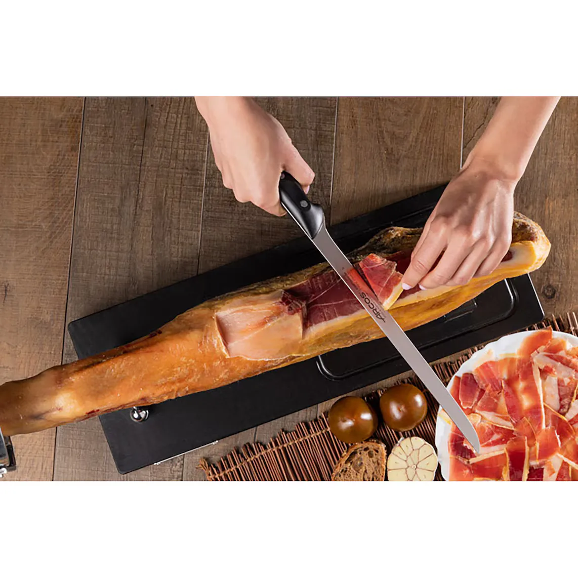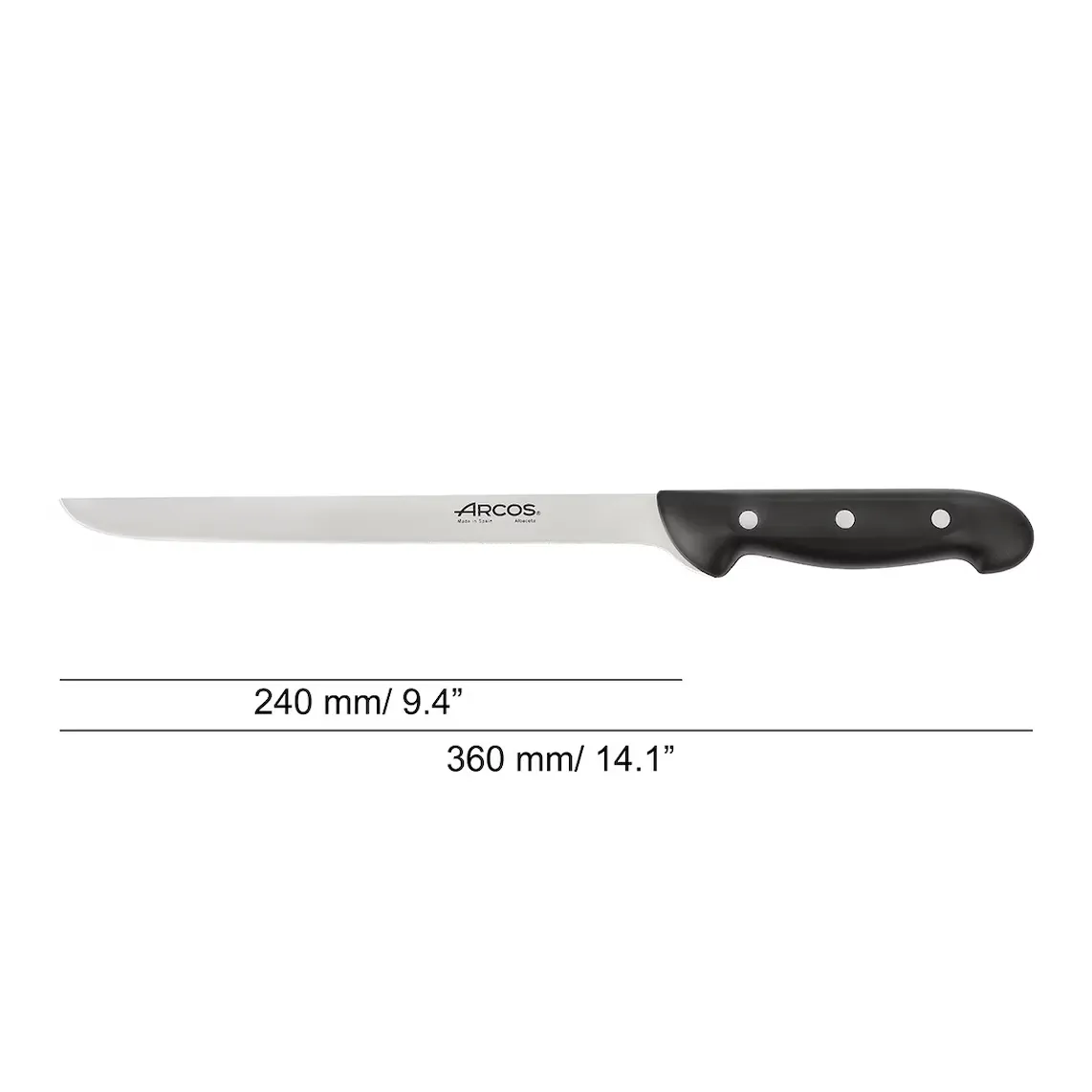 Нарезайте ветчину профессионально и наслаждайтесь ее вкусом благодаря этому ножу для ветчины из серии Maître de Arcos. Гибкость лезвия позволяет нарезать ветчину с большей точностью.