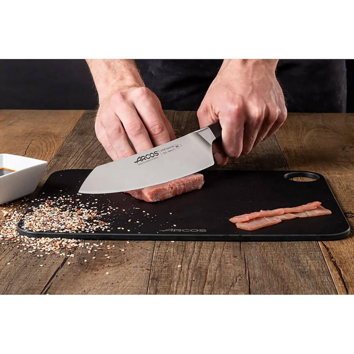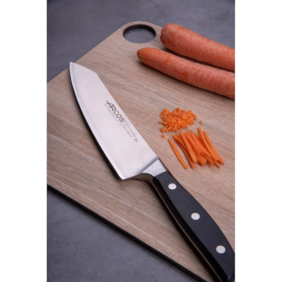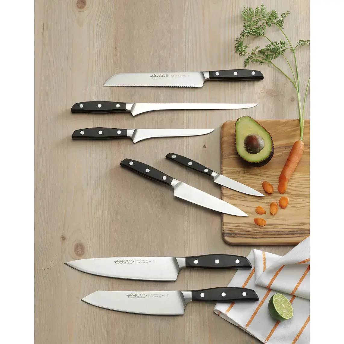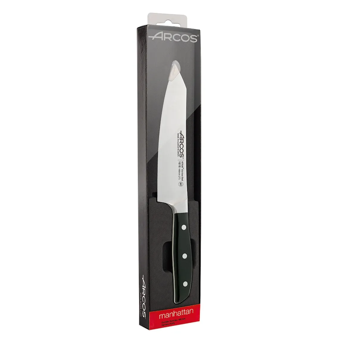 Полезно знать: Arcos представляет в серии Манхэттен свою последнюю инновацию: лезвие ''шёлк'', обеспечивающее более удобный рез и увеличивающее срок службы заточки.