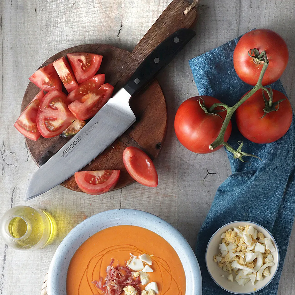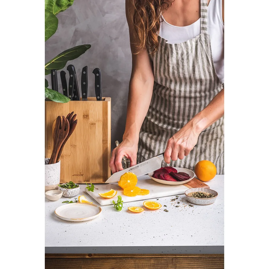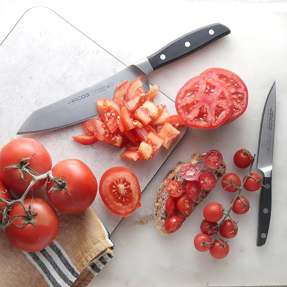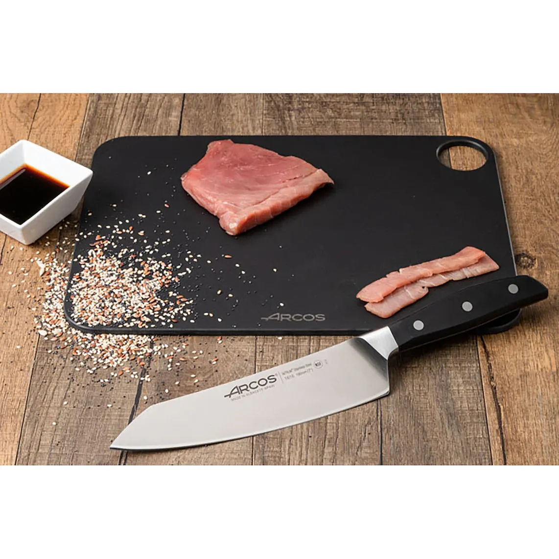 Полезно знать: Arcos представляет в серии Манхэттен свою последнюю инновацию: лезвие ''шёлк'', обеспечивающее более удобный рез и увеличивающее срок службы заточки.
