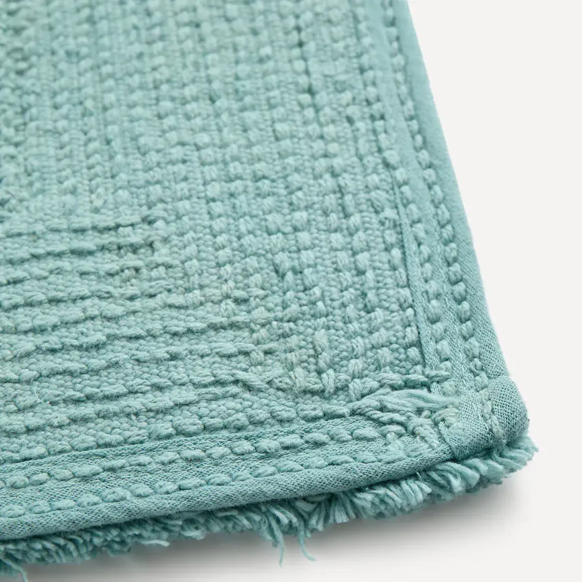 Однотонный коврик для ванной с контрастной рамкой.