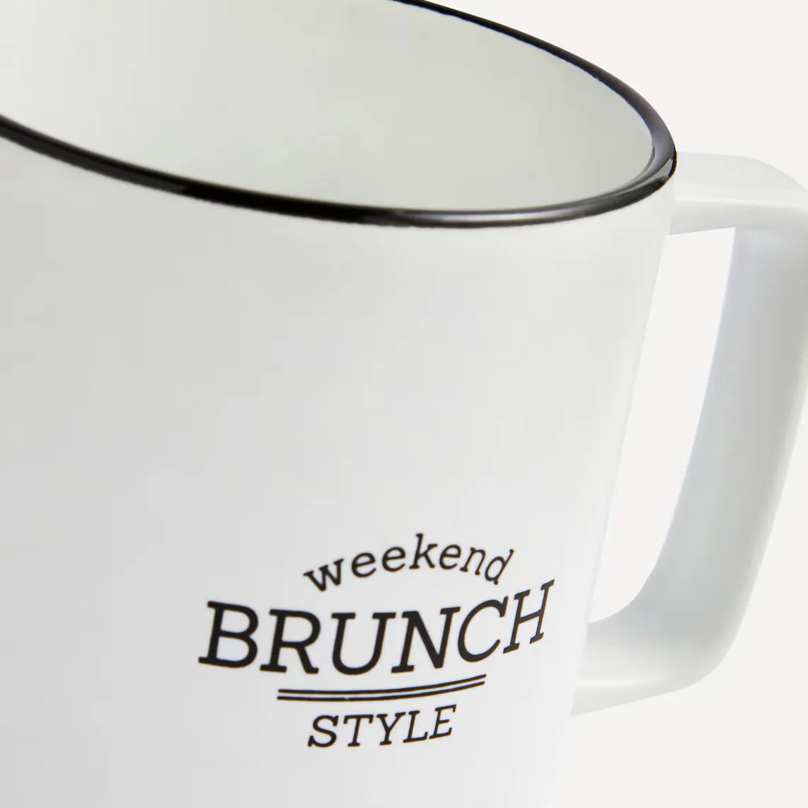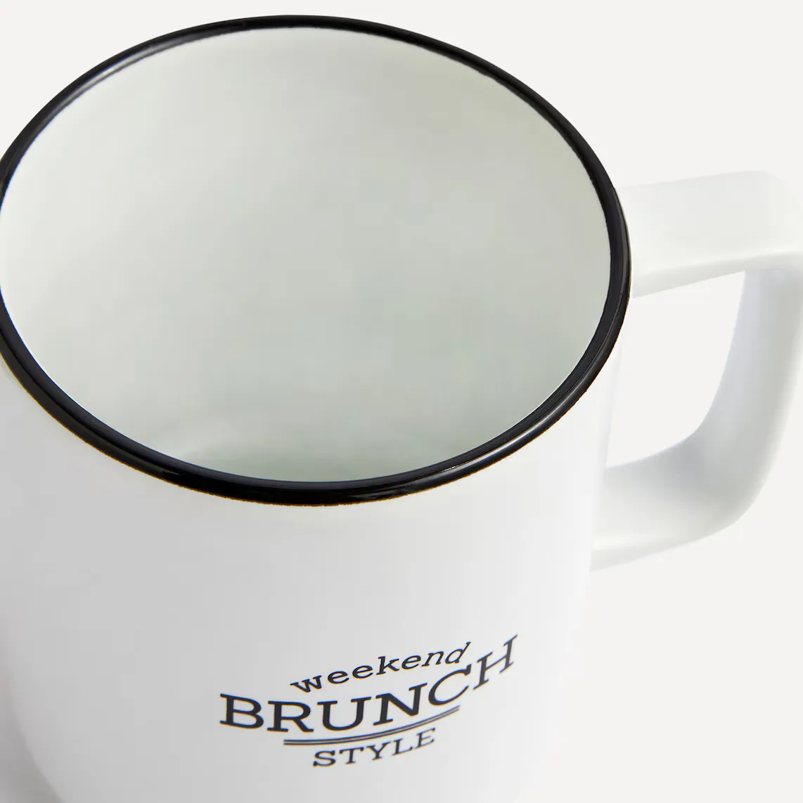 Завтракаете поздно? У вас ранний обед? Коллекция Brunch представляет вам серию идеальных продуктов, которые помогут вам насладиться бранчем с гарантированным успехом. Как эта матовая белая кружка с черной окантовкой из керамогранита, материала, который очень устойчив к царапинам и идеально подходит для повседневного использования, поскольку его можно мыть как в посудомоечной машине, так и в микроволновой печи.
