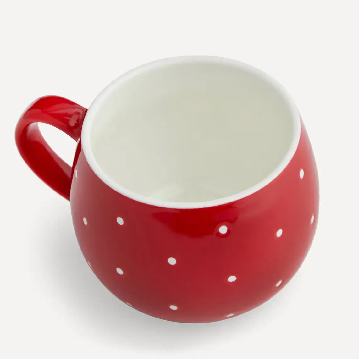 Чашка типа кружки емкостью 380 мл идеально подходит для завтрака или наслаждения любимым напитком в любое время. Он имеет овальную форму, а отпечаток белых точек на красном фоне напоминает гриб.