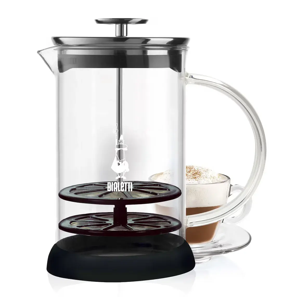 Кувшин для взбивания молока и получения вкусной пены, идеально подходит для капучино и смузи. Корпус изготовлен из боросиликатного стекла – очень легкого материала, устойчивого к высоким температурам, идеально подходящего для работы с горячим молоком. А основа силиконовая для лучшего крепления к столешнице.