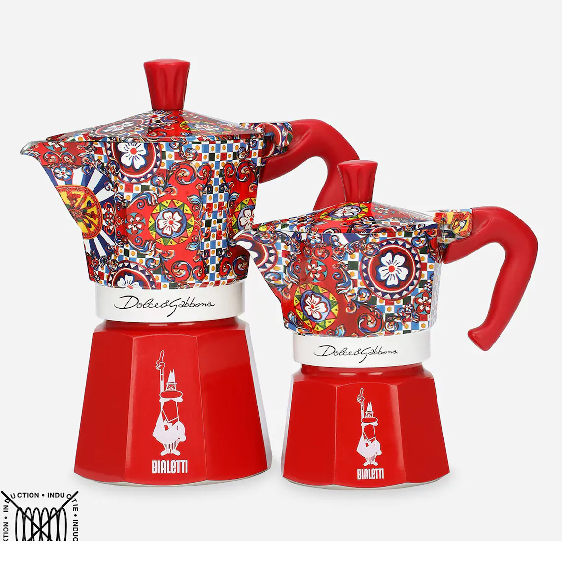 Специальная версия экспресс-кофеварки Dolce & Gabbana Moka от Bialetti отдает дань уважения мастерству, пейзажам и уникальному колориту Сицилии и превращает кофейный ритуал в праздник стиля. Отличный образец ар-деко, эта кофеварка изготовлена из алюминия с добавлением термопластика и силикона, подходит для газовых, электрических и стеклокерамических плит. Его можно использовать на индукционных плитах только и исключительно с адаптером для индукционной плиты Bialetti.