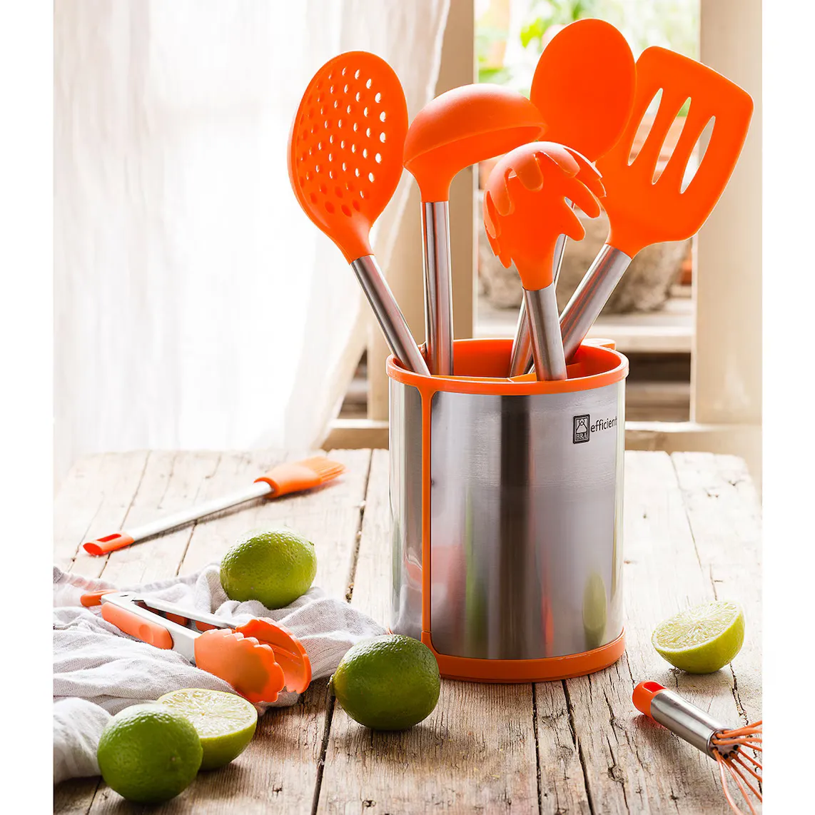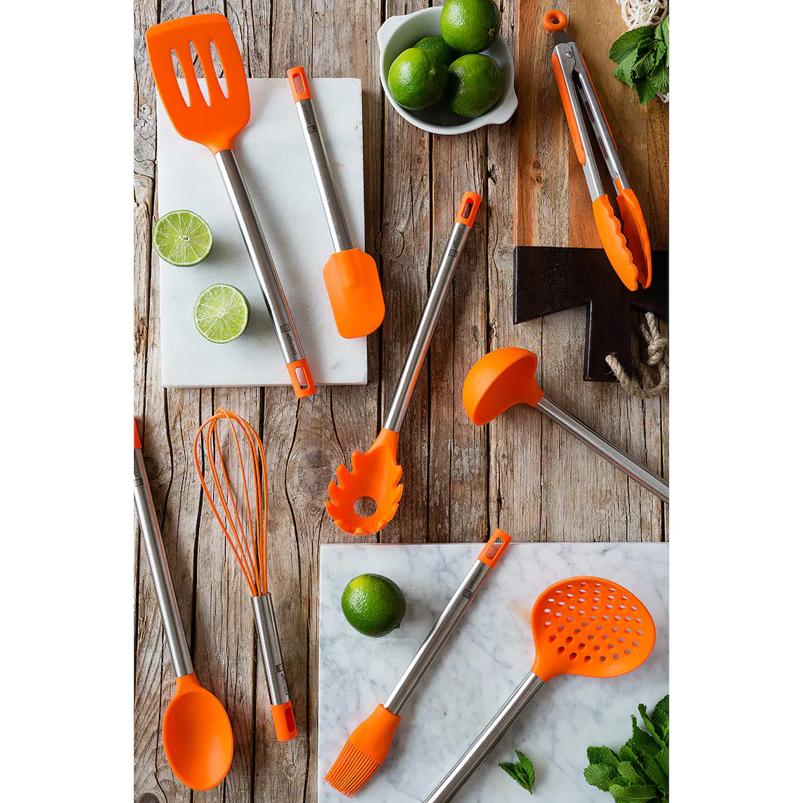Венчик с ручкой из нержавеющей стали высочайшего качества 18/10 и нейлоновыми стержнями с силиконовым покрытием, идеальным материалом для контакта с пищевыми продуктами, поскольку он не впитывает запахи и вкусы.