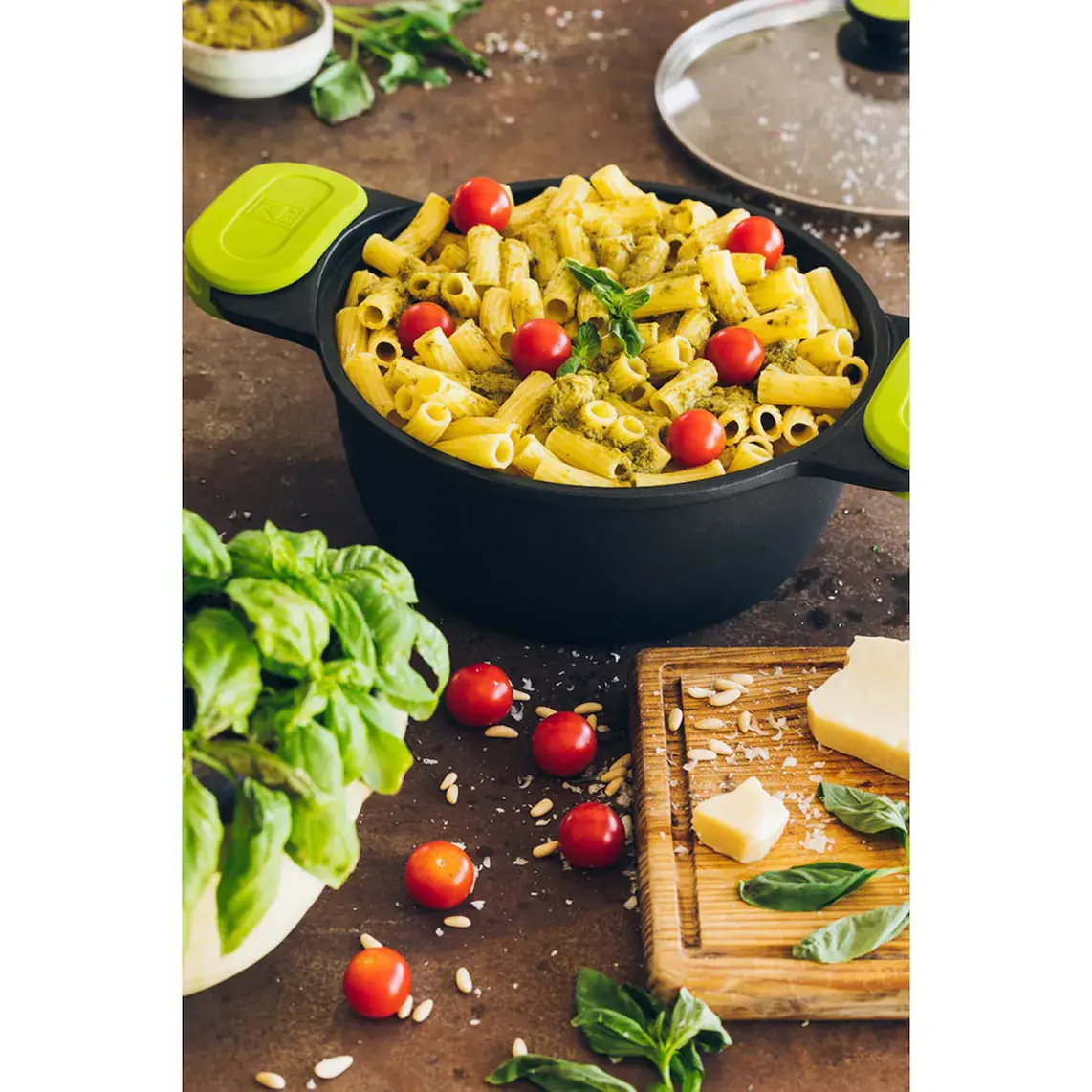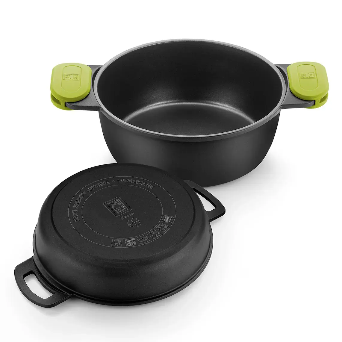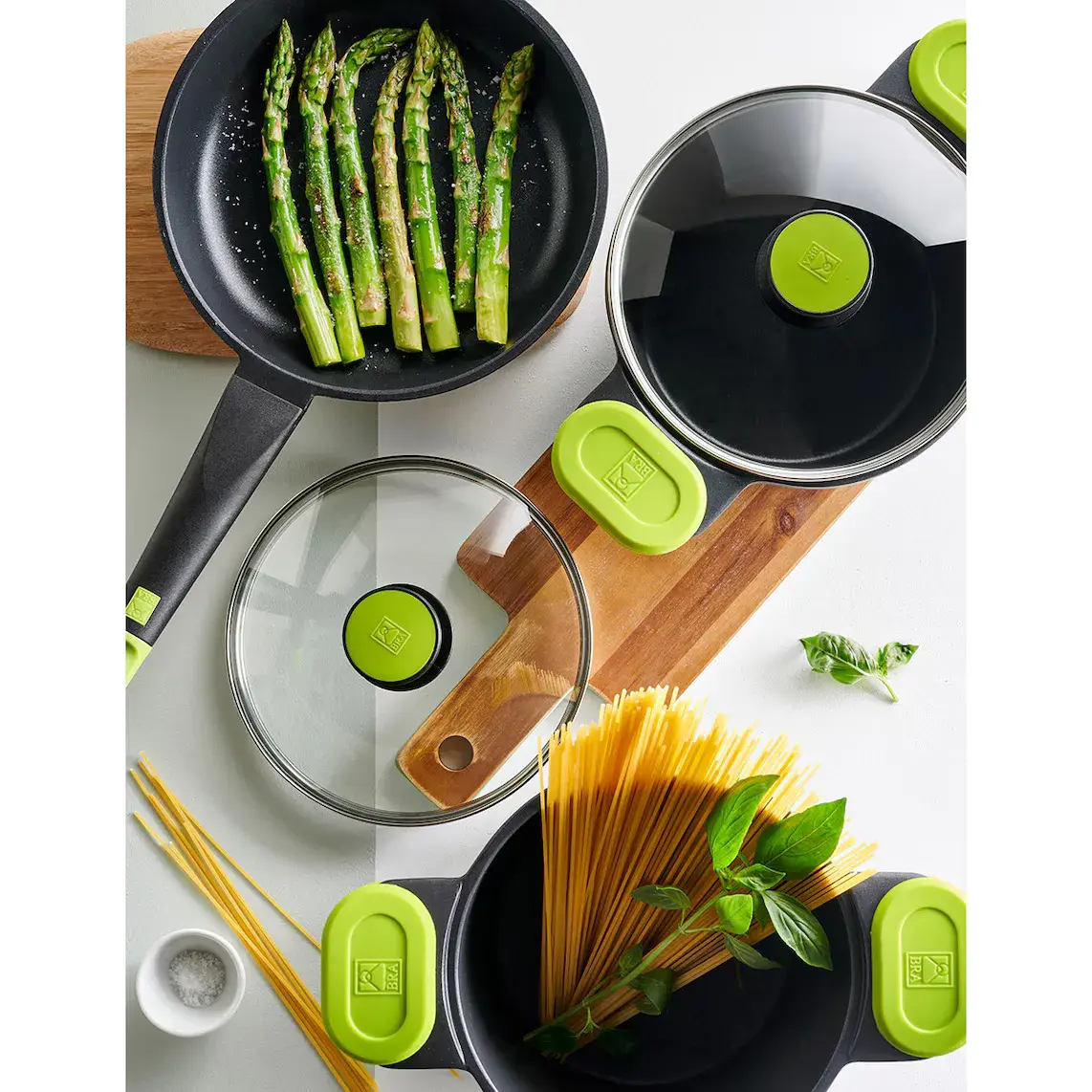 Высокая кастрюля Foodie от Bra — идеальное решение для приготовления пищи в любом доме, поскольку она подходит для всех типов плит, включая индукционные, и сочетает в себе лучшее качество с современным и неподвластным времени дизайном черного цвета с цветными вставками на ручках.