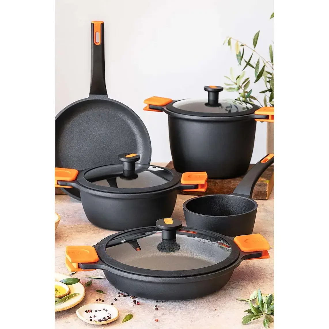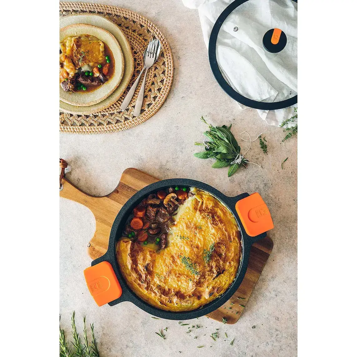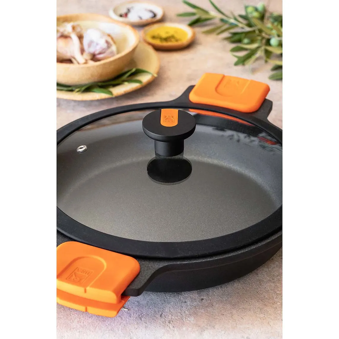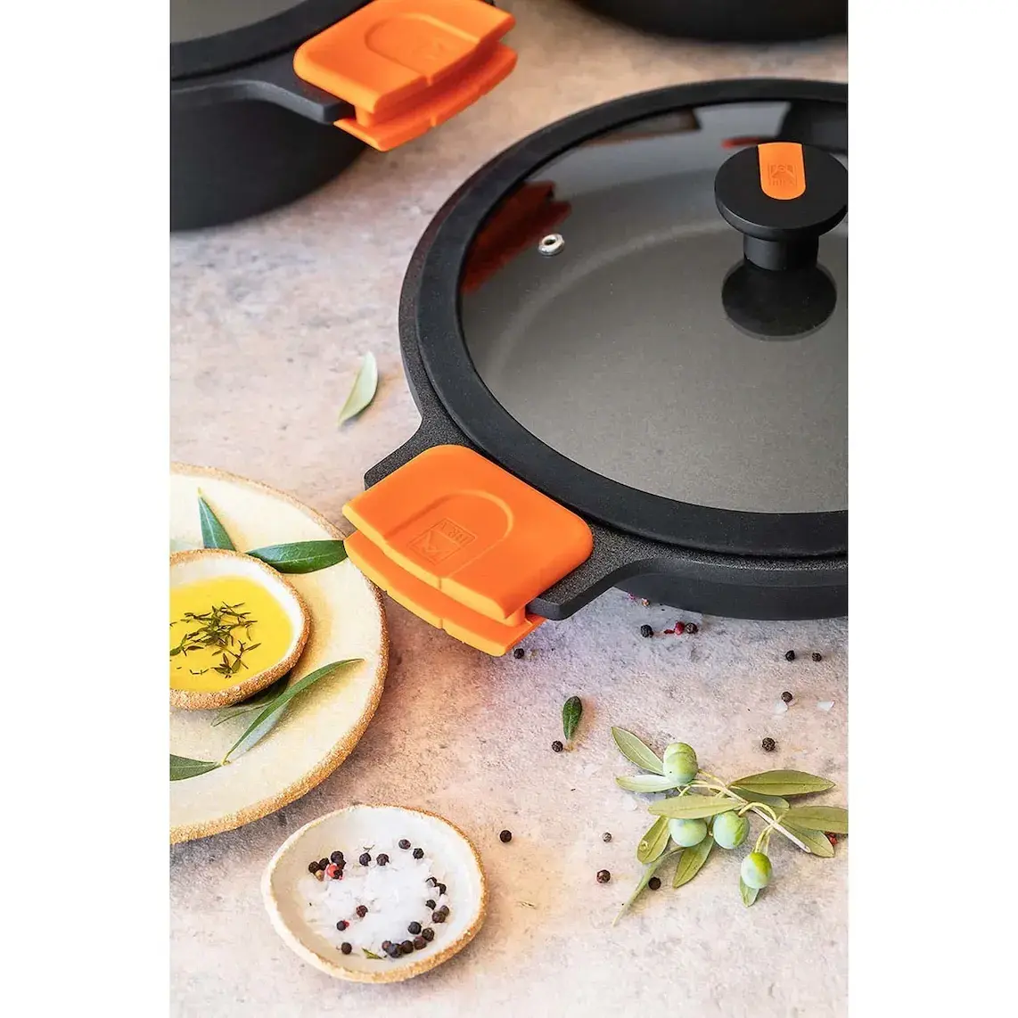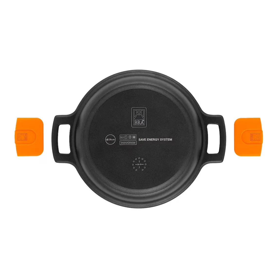 Низкая кастрюля с крышкой из серии Efficient Pro от Bra эксклюзивно для El Corte Inglés. Кастрюля из недеформируемого литого алюминия, лучшего на рынке на данный момент, отличается максимальной долговечностью, устойчивостью к царапинам и лучшей антиадгезией. Обновленный дизайн, обеспечивающий максимальную теплоотдачу и более эффективное использование энергии благодаря антипригарному внутреннему покрытию Premium Teflon Profile Plus, не содержащему ПФОК.