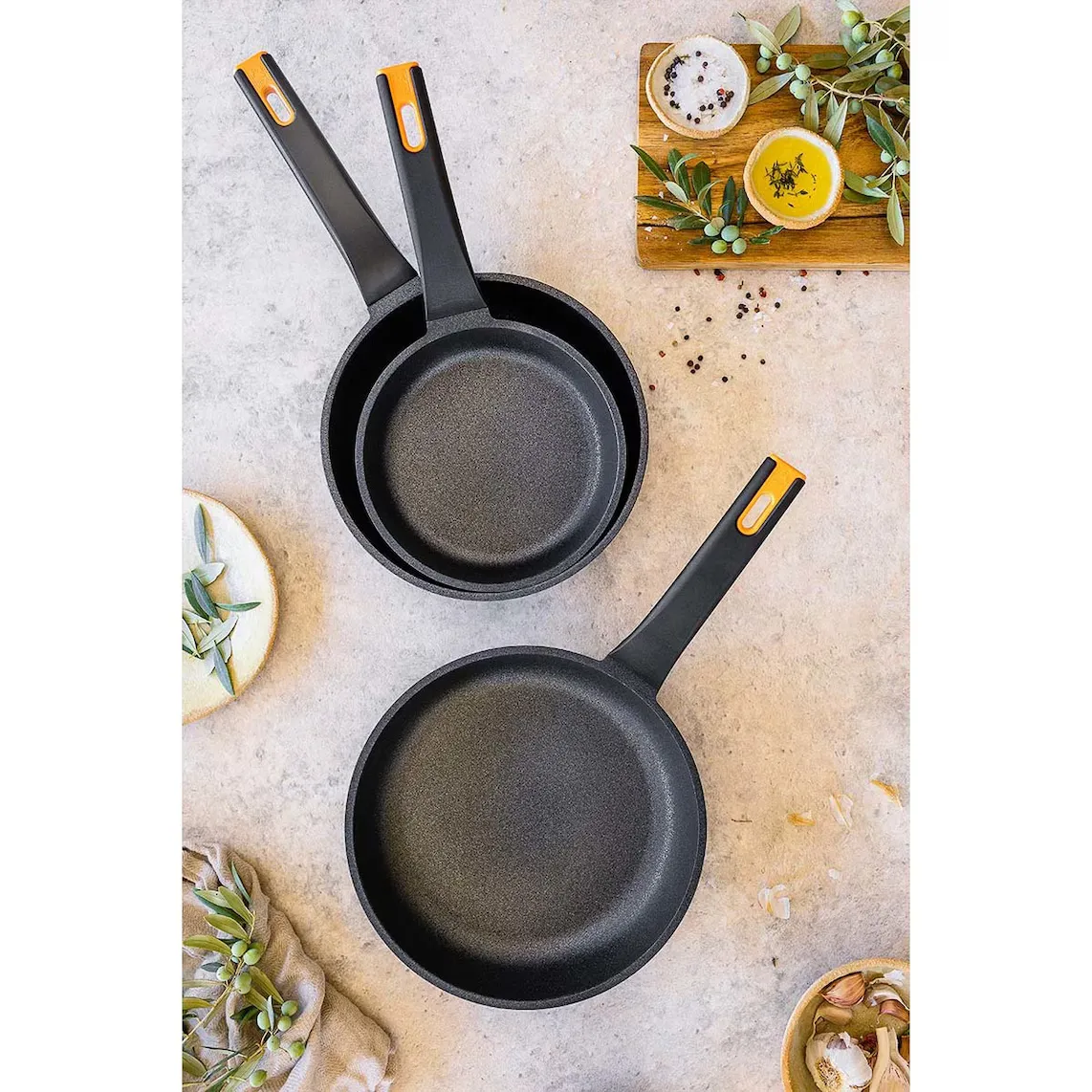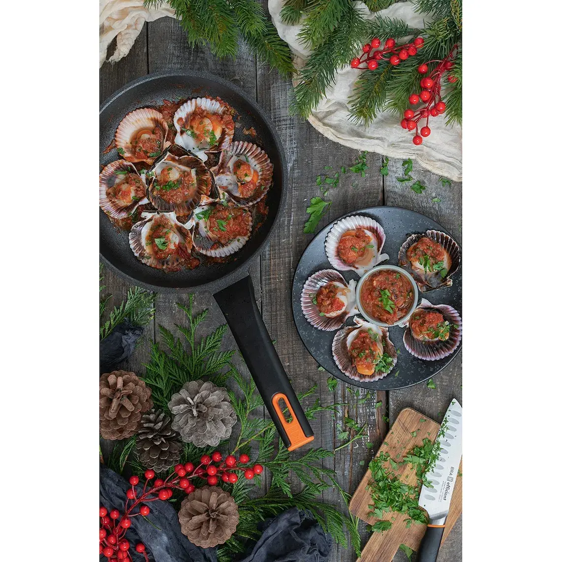 Сковорода из серии Bra Efficient Pro эксклюзивно для El Corte Inglés. Сковорода из недеформируемого литого алюминия, лучшая на рынке на сегодняшний день, отличается максимальной долговечностью, устойчивостью к царапинам и лучшими антипригарными свойствами. Обновленный дизайн, обеспечивающий максимальную теплоотдачу и более эффективное использование энергии благодаря внутреннему антипригарному покрытию Premium Teflon Profile Plus, не содержащему ПФОК, с более длительным сроком использования благодаря улучшенной стойкости к истиранию.